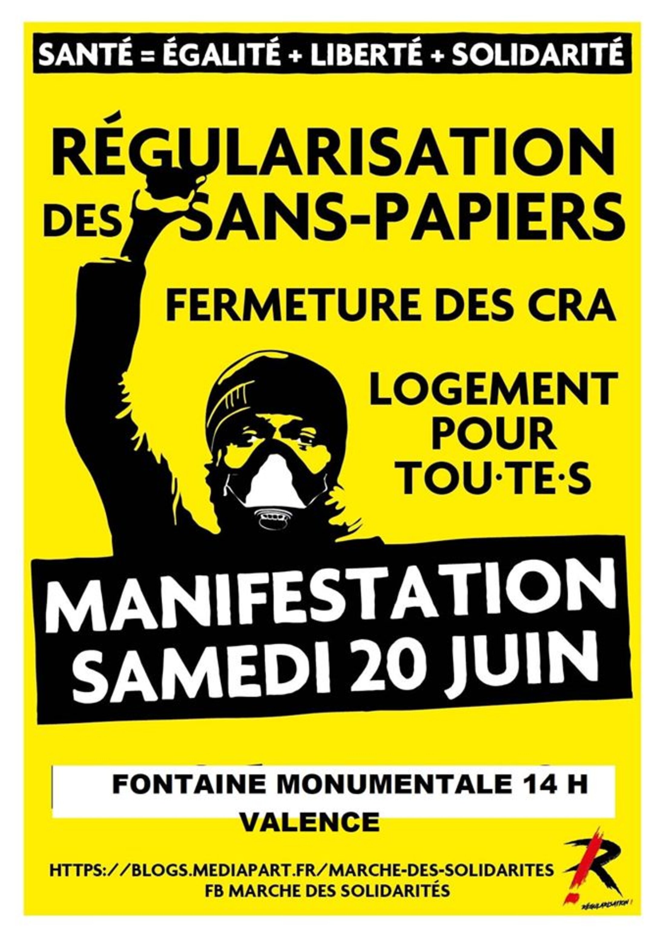 Les réseaux de soutien s’ajoutent, se coordonnent. Le réseau national des Etats Généraux des Migrations et la Cimade appellent à manifester (appel et liste des signataires : https://blogs.mediapart.fr/marche-des-solidarites/blog/120620/marche-des-solidarites-le-13-juin-et-le-20-juin-est-la ). Lors de leur rencontre avec le gouvernement la CGT et la CFDT ont exigé la régularisation des Sans-Papiers. La CGT appelle à participer aux manifestations du 20 juin. (Communiqué de la CGT : https://www.cgt.fr/comm-de-presse/travailleurs-sans-papiers-des-premiers-de-corvee-qui-doivent-etre-regularises )