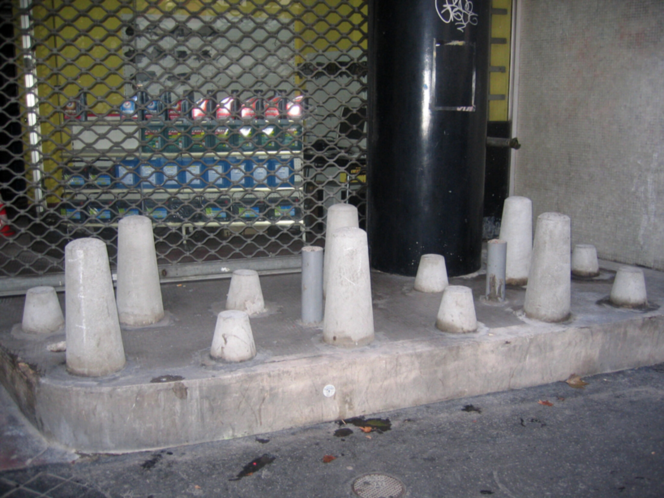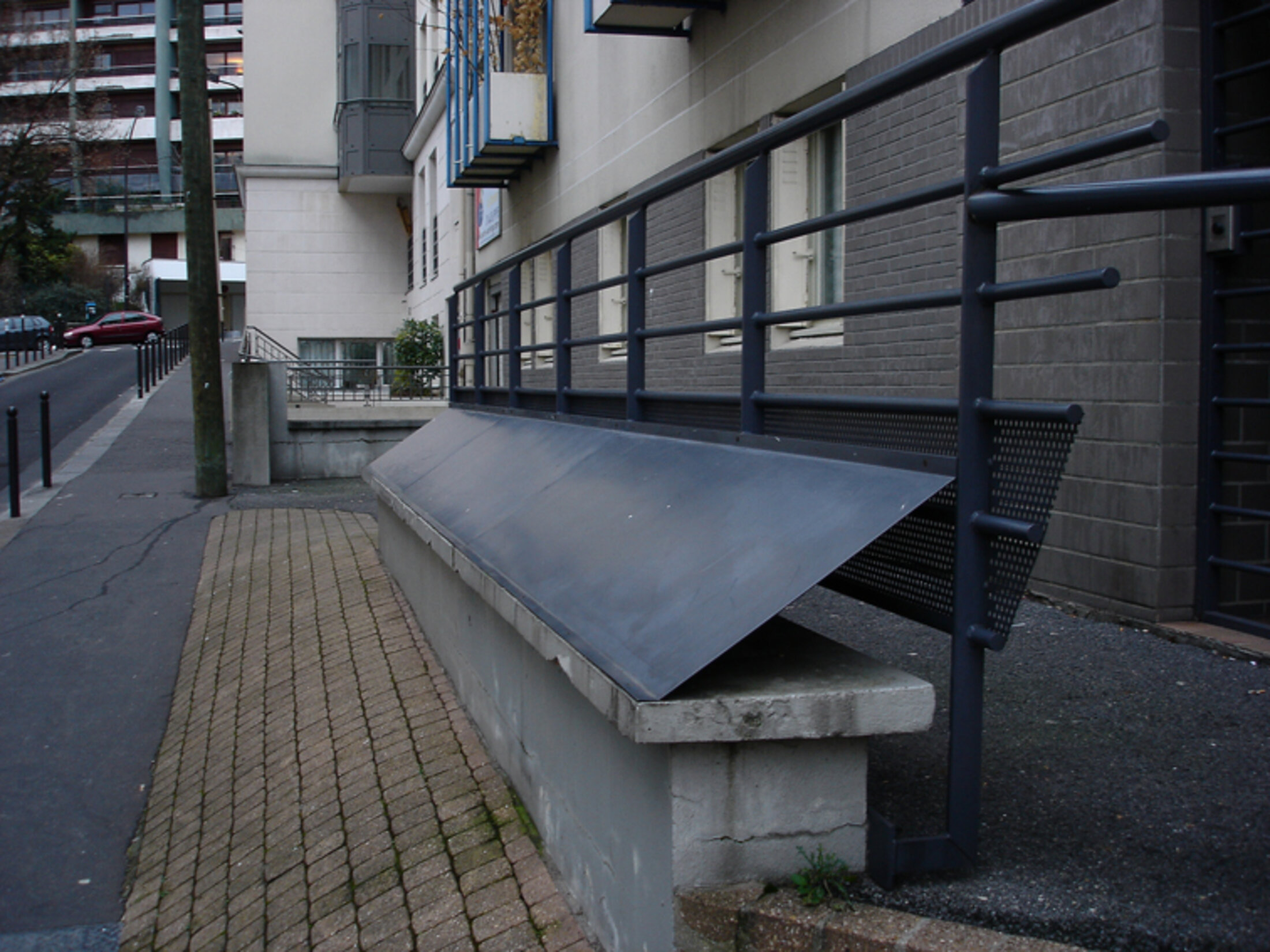Depuis plusieurs années, les municipalités mettent en place des dispositifs anti-sans-abri. En 2014, dans la ville d’Angoulême, des grillages sont mis en place autour des bancs pour empêcher les sans-abri de dormir dessus. Au total, 9 bancs du centre-ville sont grillagés à la veille de Noël. Dans les métros de la capitale, nous pouvons observer que des bancs inclinés, des cactus et des lumières sont installés pour éviter la présence des sans-abri. L'association Survival Group montre comment les institutions jouent avec l’urbanisme, l’architecture et l’esthétique pour camoufler leurs dispositifs anti-sans abri. C'est sur ce sujet qu'est dédié la suite de mon article. Les lecteurs trouveront une trentaine de photos qui montrent comment les institutions organisent l'éloignement des personnes sans-abri au travers de procédés subtils, comme par exemple les architectures métalliques, les pointes, les cactus etc. Les photos ci-dessus proviennent de France, et certaines de Belgique.