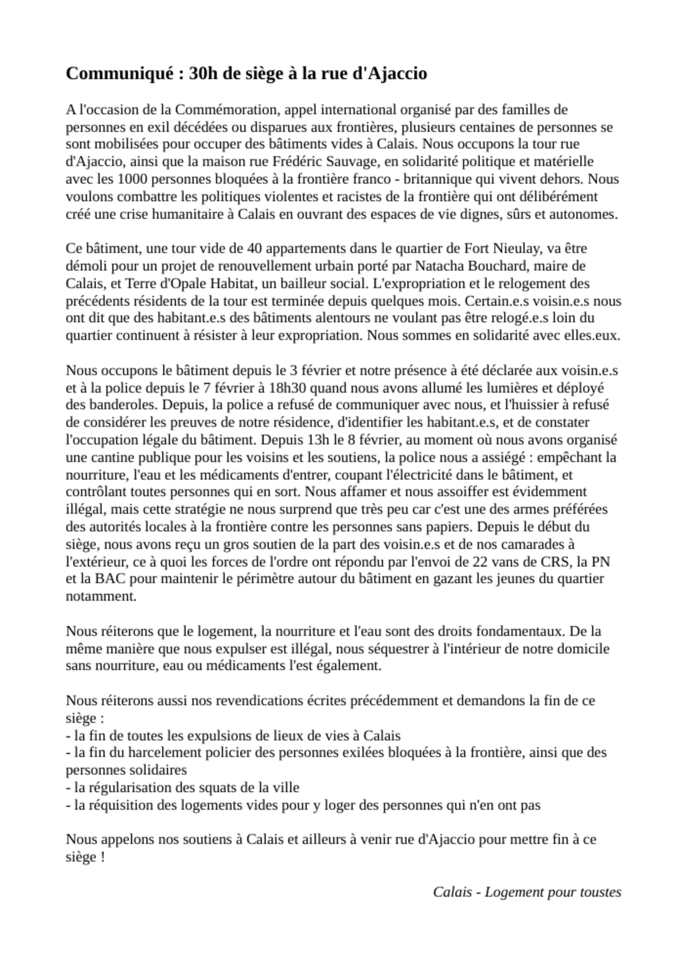 Un collectif occupe actuellement deux bâtiments vides à Calais, en lutte pour les droits des exilé-es