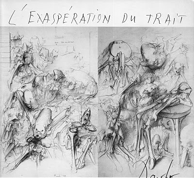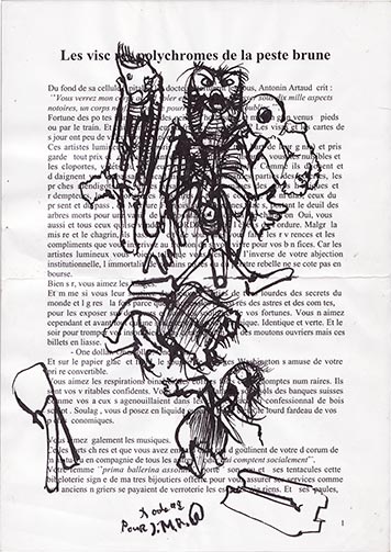 Dado, dessin tracé sur le livre de J M Rouillan : Les viscères polychromes de la peste brune. (Editions de la différence)