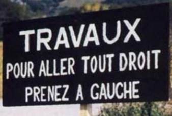 "TRAVAUX pour aller tout droit, prenez à gauche !"