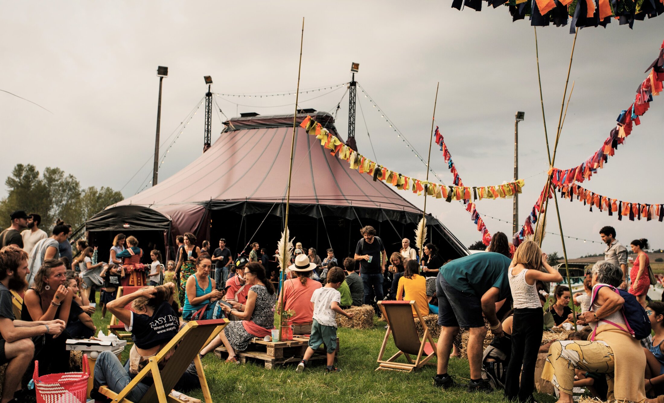 Sur le stade de Montcabrier, la musique résonne sous le chapiteau pendant qu’une foule d’enfants lance balles et cerceaux au beau milieu d'un espace hors du temps où flottent des guirlandes en tissu. Sous les barnums des stands associatifs, assis sur des balles de pailles, les discussions vont bon train ! Pour cette première édition du FestiVAD, les membres de l’association Village Action Durable se sont démenés pour offrir aux 1200 festivaliers présents un lieu de rencontres, d’échanges et de fête au service de la lutte contre le projet d’autoroute Castres-Toulouse.