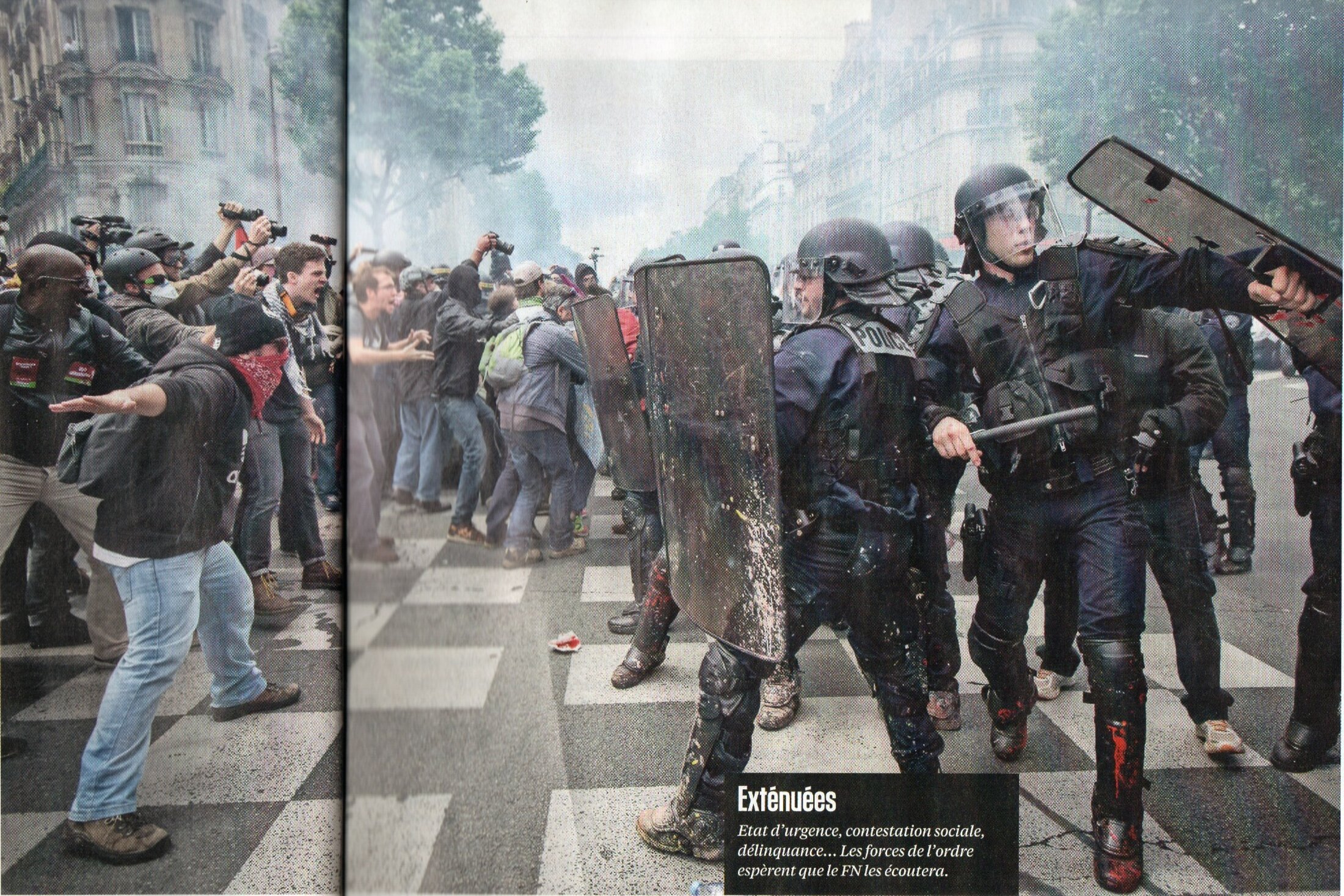 Si l’on ne peut de fait plus compter en interne sur la CGT, ses prétendus effectifs de service d’ordre étant visiblement devenus eux-mêmes des nervis, harcelant la Loi et prêtant à l’occasion la main à la racaille noire, qu’on laisse simplement faire nos escadrons sur zones avec mission de remplir ce qui est leur fonction : mettre les choses en ordre.