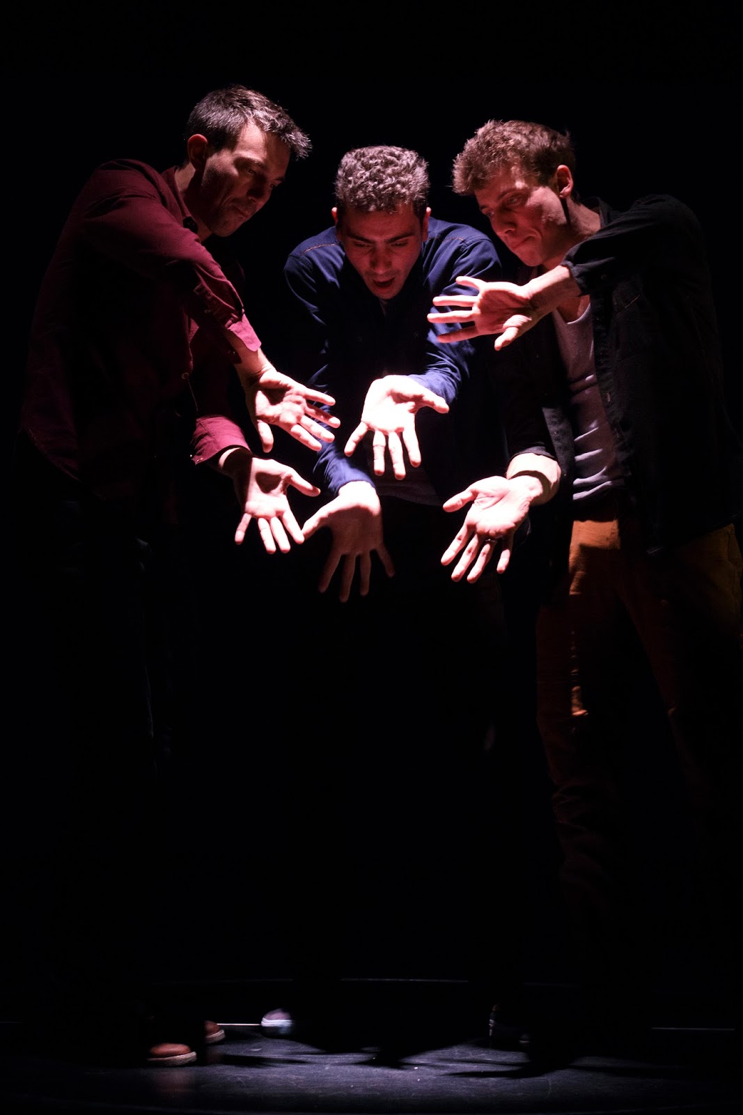 Ce sont trois jeunes comédiens qui racontent cette histoire, ensemble ou tour à tour, bondissants, courants, tombants. Les lumières éclairent habilement le plateau et un décor réduit au minimum, un monticule à transformation.