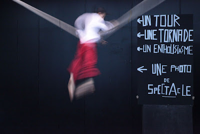 Circassiens et acteurs, oui, mais ils n'interprètent pas uniquement des personnages, ils n'endossent pas toujours un rôle, ils l'exécutent, sur un fil, au mat chinois, ou juste avec les mains ou juste avec la tête ou en quelques mots.