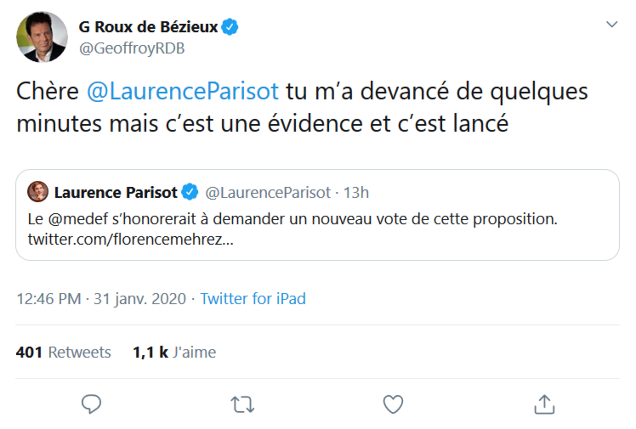 En effet, comble de l’ironie, c’est le Medef qui demande un nouveau vote sur cette disposition de la proposition de loi (voir ici). Voilà qui change tout ! Car, si c'est leur donneur d'ordres qui les y invite, il ne fait pas de doute que ces députés serviles s’empresseront d’approuver demain ce qu’ils ont rejeté hier. Car de dignité, ils n’en ont plus depuis bien longtemps.