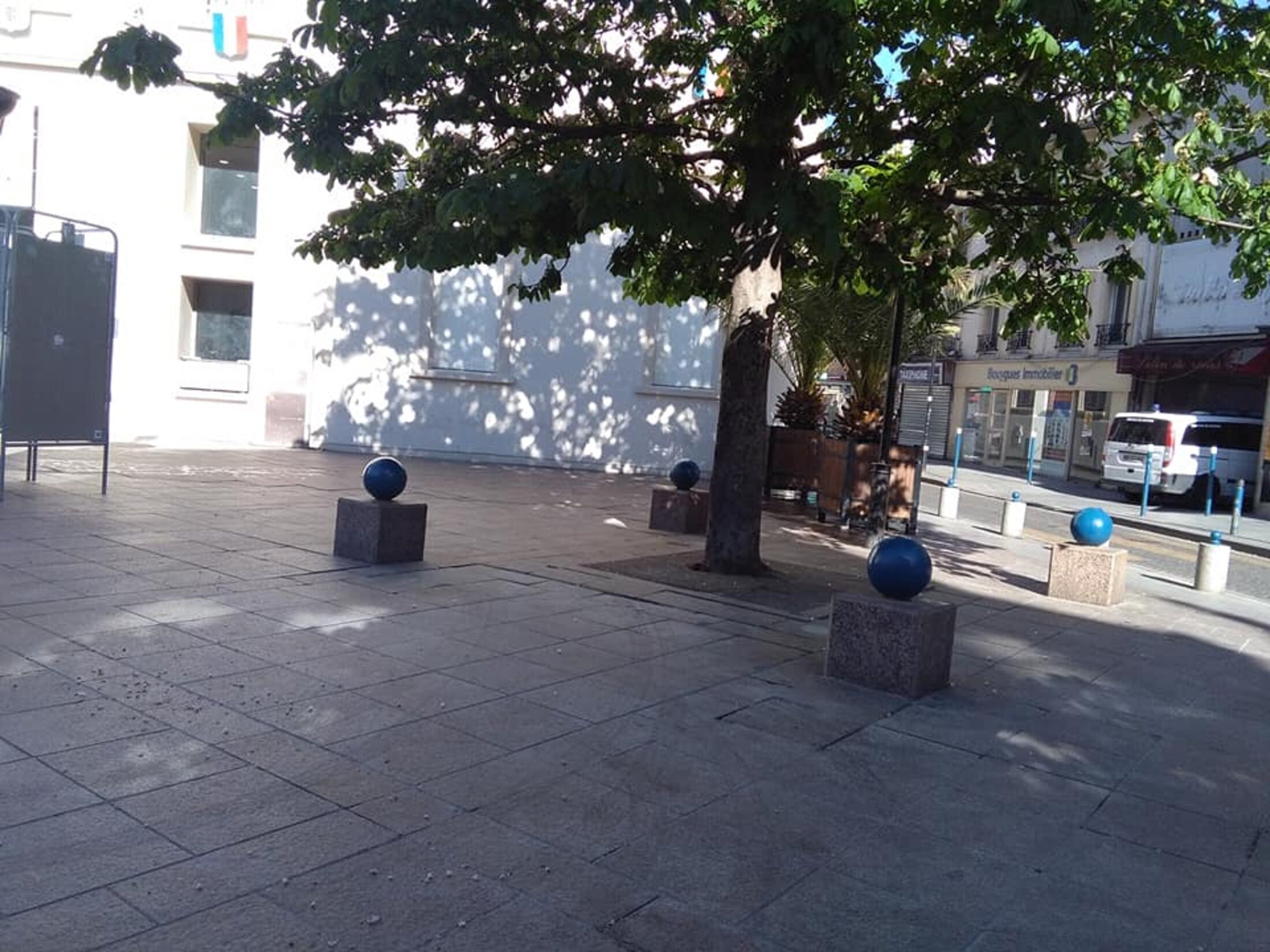 Passant dans une rue je découvre de drôles de boules, plantées là, sur des trottoirs. Boules bleues pour gêner les spécialistes du mauvais stationnement. Elles disparaissent soudain. Je les retrouve à la mairie. En bas de la mairie se tient régulièrement une assemblée - non pas de sages- mais d'alcooliques qui ne sont plus anonymes depuis longtemps. Là pas de programme culturel, ou artisanal, sauf celui qui s'est enfoui en l'homme de la rue.