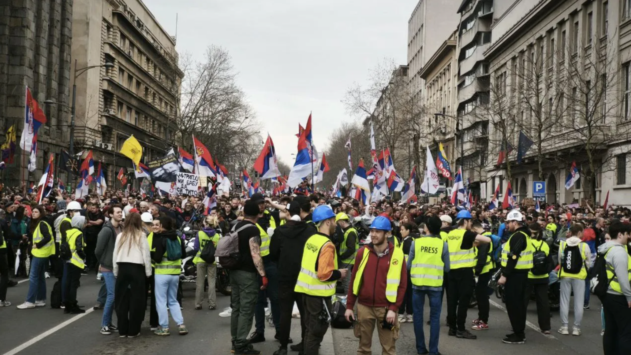 Après des mois de confusion idéologique, c'est-à-dire de non-déclaration, des orientations idéologiques plus claires se dessinent ces derniers temps, tant chez les étudiants que dans la société en général. D'une part, elles sont visibles dans l'apparition et la présence croissante de drapeaux « No Surrender “(2) (ainsi que de drapeaux de l'armée orthodoxe russe et de symboles tchetniks), et d'autre part, dans les efforts de l'opposition et du public libéral - et de certains groupes dirigés par des étudiants - pour réduire la rébellion étudiante et le soulèvement social à un changement de régime, pour la traduire dans le langage de la politique institutionnelle, la faire dévier sur la voie de la démocratie libérale, sous l'administration temporaire d'un gouvernement « d'experts » qui garantira les conditions d'élections libres et équitables et ainsi de suite.
