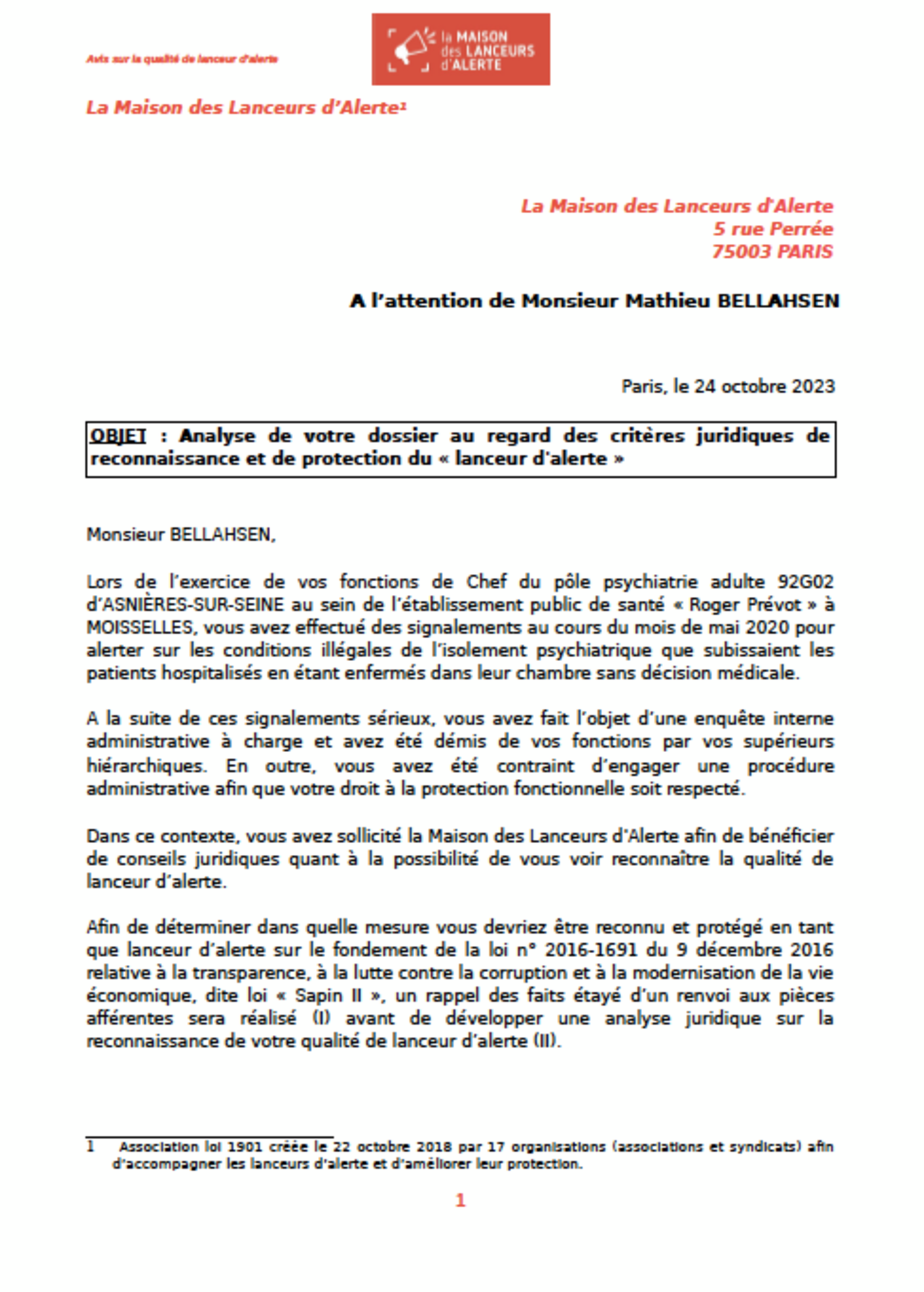 En témoigne l’analyse juridique de la Maison des Lanceurs d’Alerte datant d’octobre 2023 :