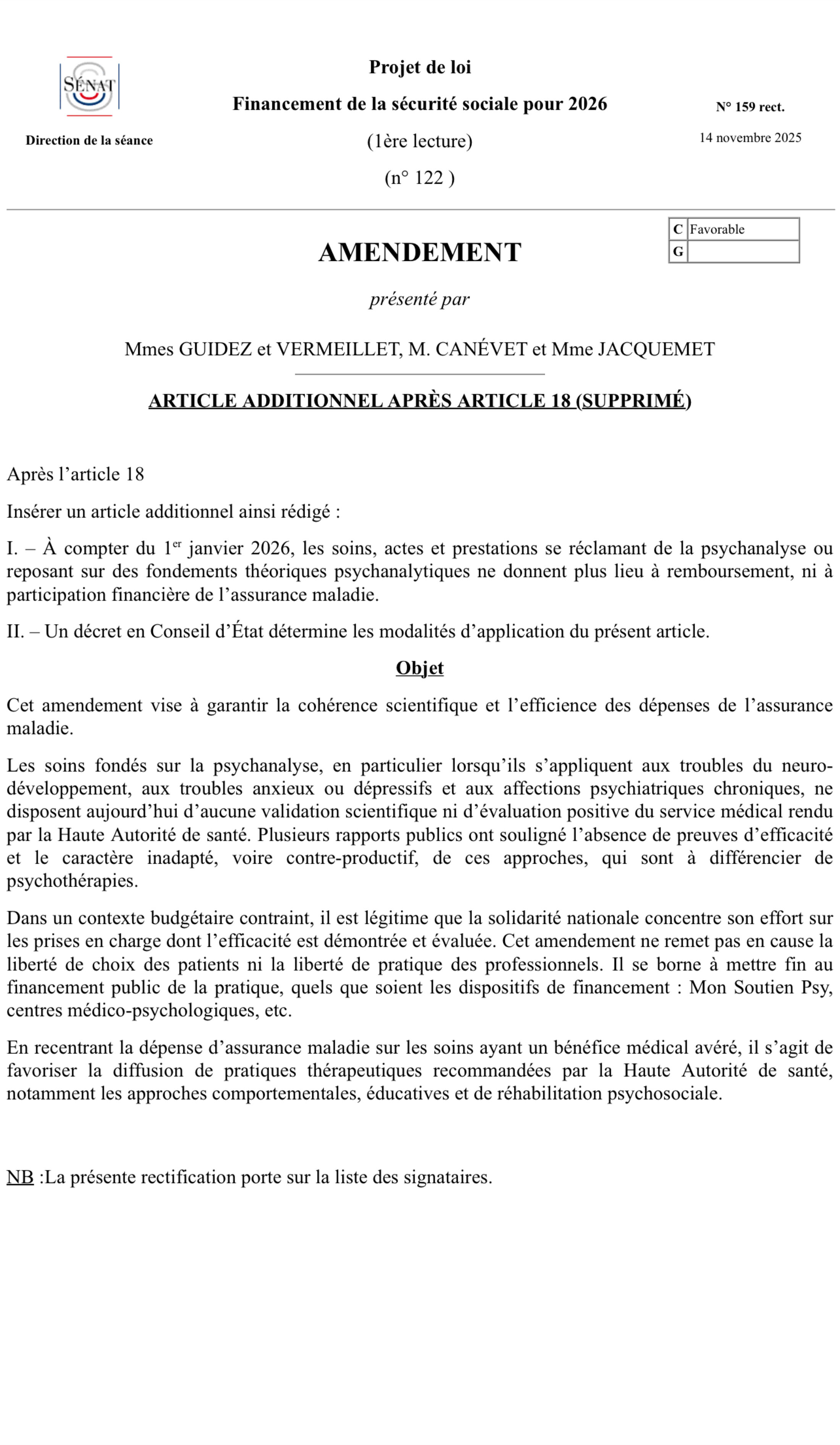 L’argumentaire de l’amendement prête à sourire car, comme d’habitude, les postures idéologiques en mode « chasse aux sorcières » ont des ficelles assez grossières. Les soldes sur les fake news étant permanentes, ces sénateurs auraient tort de s'en priver. Le Printemps de la Psychiatrie a débunké les propos outranciers de l’amendement dans des courriels adressés à des parlementaires.