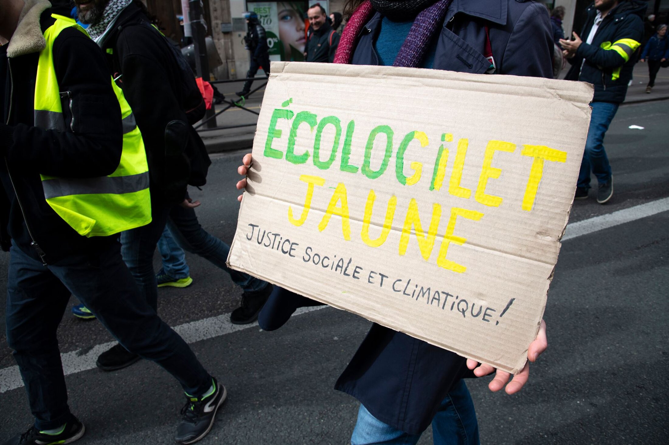 Nous nous revendiquons écolos ? Ca tombe bien, les marches pour le climat sont maintenant aussi jaunes que vertes. Et on retrouve dans les revendications phares des gilets jaunes des mesures d’actions directes pour le climat : taxe sur le fuel maritime et le kérosène, sauvetage du service public et renforcement des transports en communs, lutte contre l’évasion fiscale et abandon du CICE pour financer la transition écologique, grand plan d’isolation des logements, etc. Yellow is the new green.