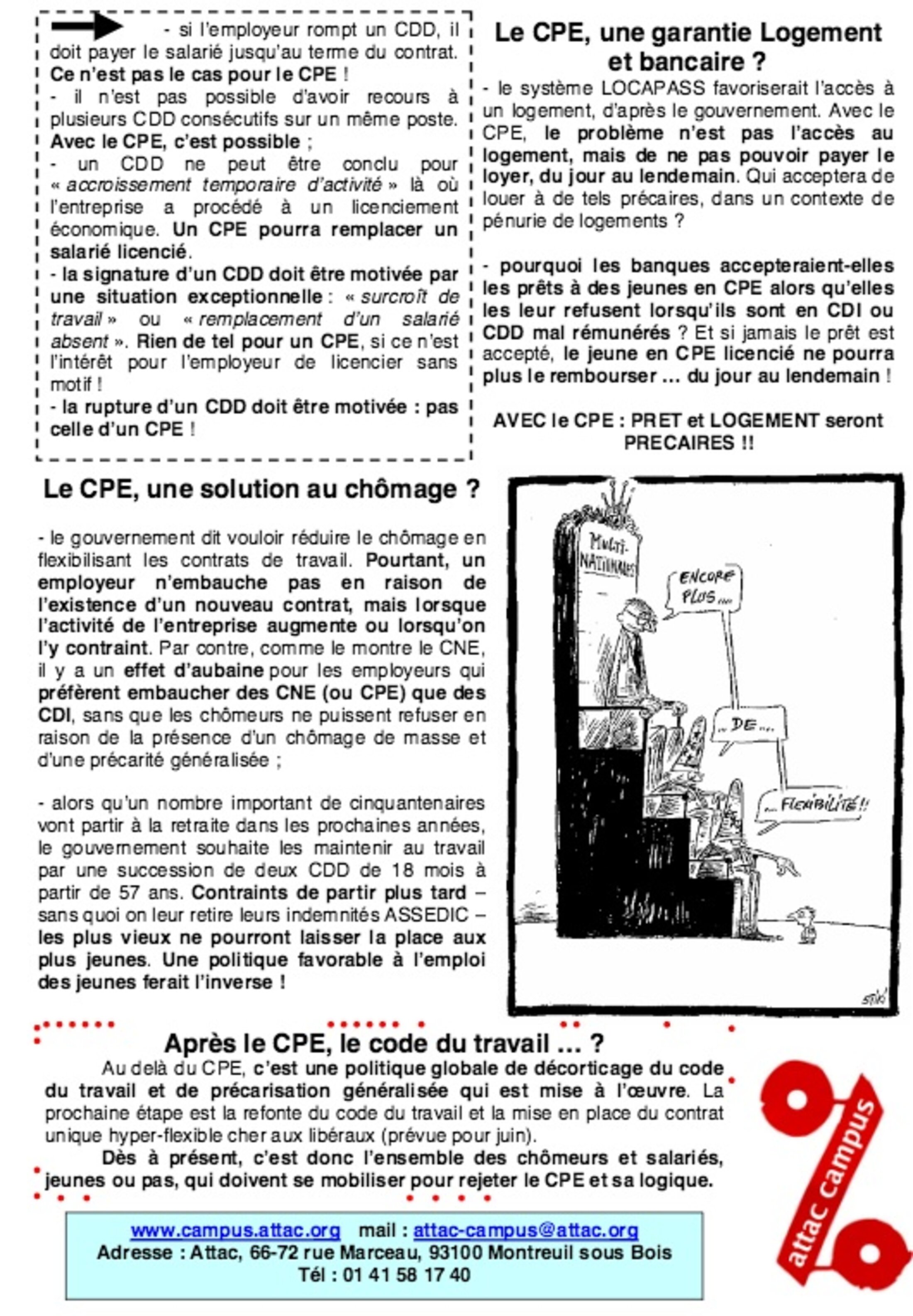 PS : à l'époque, en 2006, simple animateur des groupes Attac Campus, j'avais pris part, avec d'autres, aux réunions des organisations de jeunesse. Ci-dessous le tract Attac Campus que nous difusions à l'époque (également ici en .pdf). Ici le bilan que nous en avions tiré.
