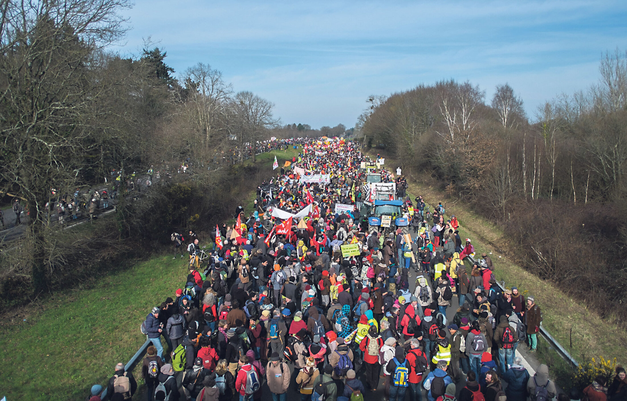 Plus de 50 000 manifestant.e.s contre la construction de l'aéroport de Notre-Dame des Landes ce samedi. Près de 15 000 à Barjac dans le Gard, contre les hydrocarbures de schiste et pour une loi d'interdiction. Le message est clair, les exigences connues : les projets de construction de nouvelles infrastructures carbonées et d'exploitation sans limite des ressources naturelles doivent être abandonnés pour laisser place à la transition. Des exigences qui sont autant d'engagements individuels et collectifs pour se mettre en travers de ce mal-développement.