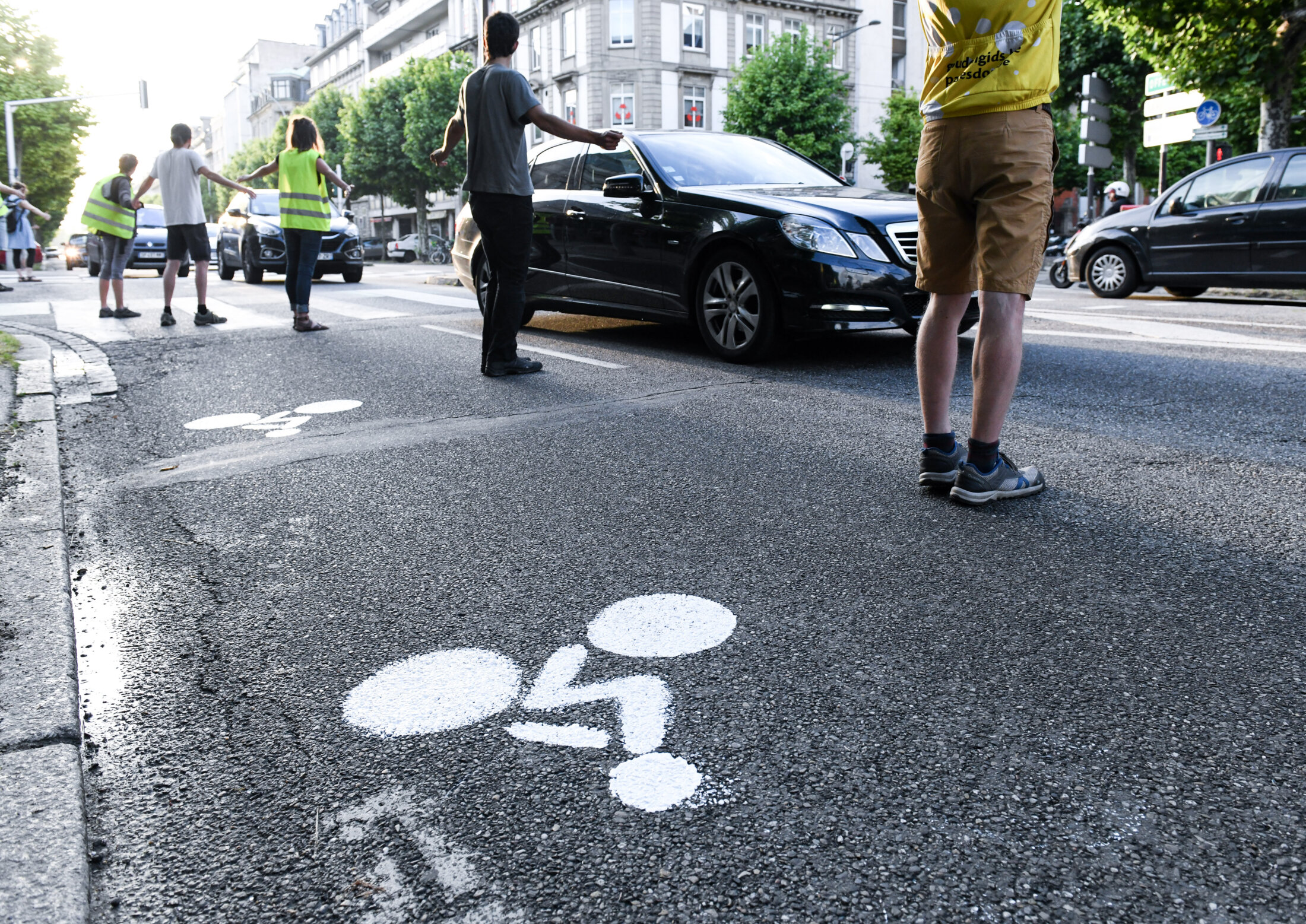 Pour ces militant.e.s vélo, l'attente n'a que trop duré. Depuis des années que les habitant.e.s des alentours de l'Avenue des Vosges à Strasbourg insistent, l'adjoint de quartier, Robert Herrmann, n'a toujours pas pris de mesures concrètes et les cyclistes restent condamné.e.s à se faufiler dangereusement entre les 20 000 pots d'échappement qui empruntent le plus long des axes strasbourgeois avec ses 1.2 km.
