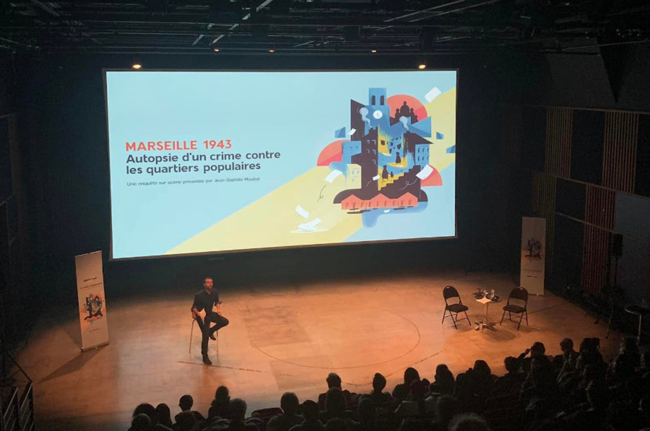Douze représentations plus tard, avec autant de journalistes sur scène, l’équipe de Mediavivant est parée pour faire face à toute éventualité: un micro qui lâche, un intervenant qui loupe son train, une jauge qui explose… Chaque fois, nous avons la satisfaction de voir en direct l’information bousculer le public, provoquer le débat. Les spectateurs prolongent eux-même l’enquête en seconde partie de soirée lors des échanges avec les journalistes et les témoins interrogés face au public.