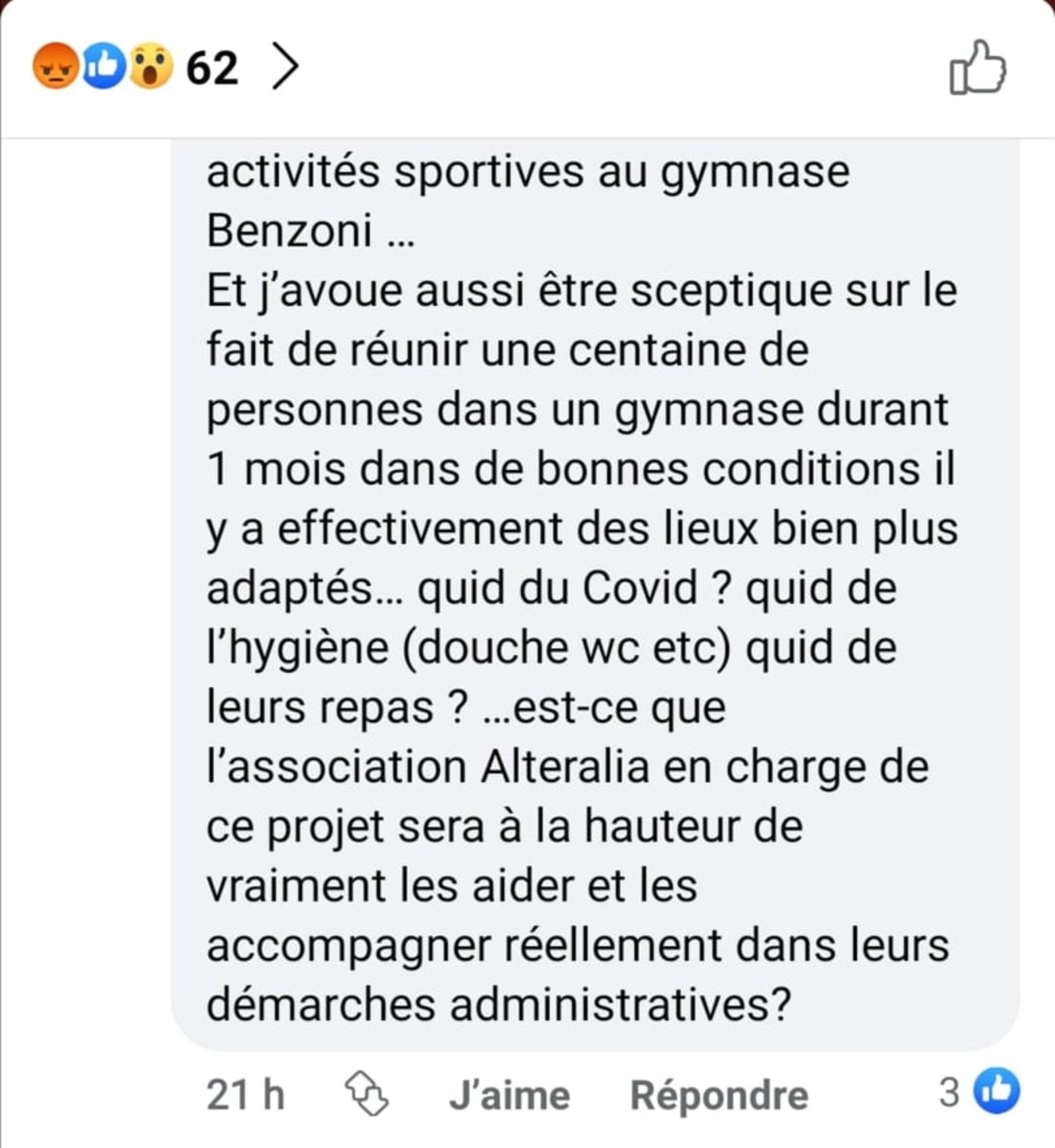 Cette solution provisoire de logement n'était pas la solution aux problèmes que rencontrent ces personnes. C'est cela qui devrait être mis en avant, et pas que leur venue sur ce territoire soit un problème.