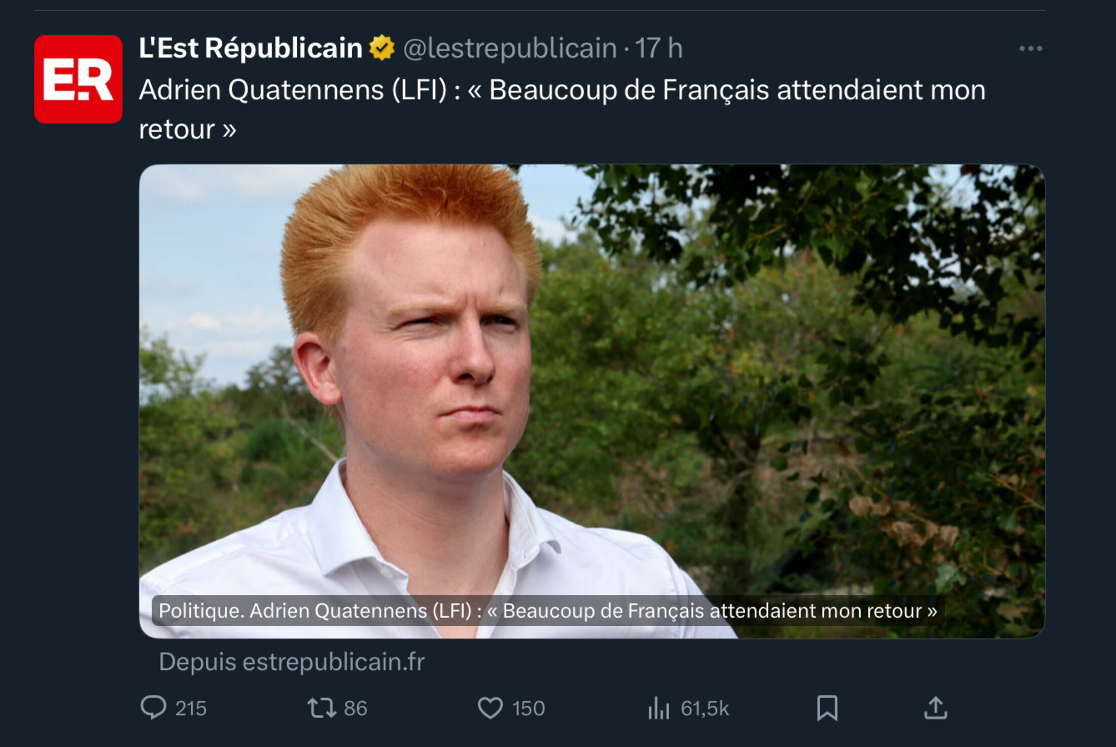 Une autre manière serait des élections au sein même du mouvement Insoumis pour confirmer le désir de son retour auprès des adhérents mais … c’est un mouvement sans adhérents !