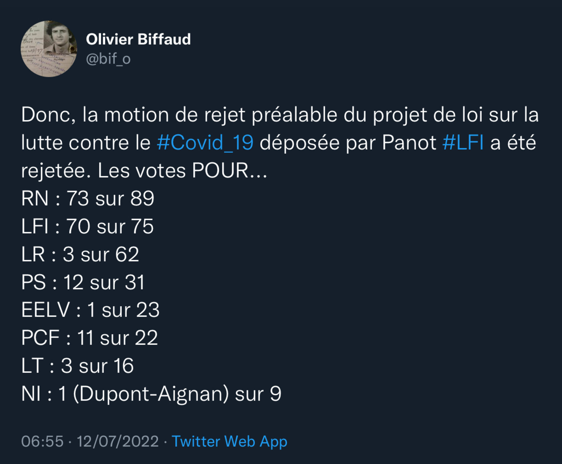 La réalité s'est avérée bien différente du discours, quasi au même moment les deux extrémités de l'hémicycle se sont levée pour célébrer leur victoire sur la loi Covid.
