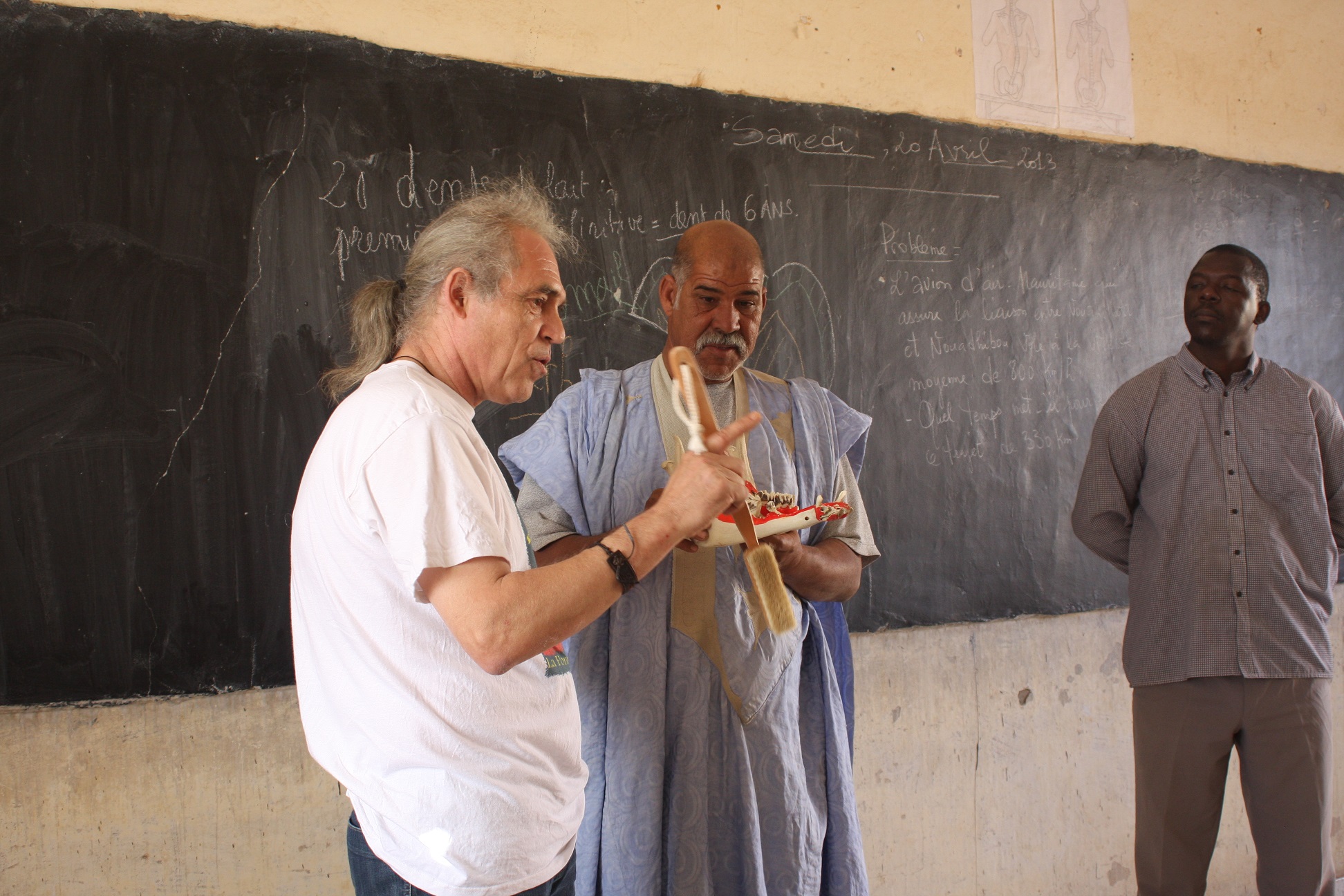 Comme La terre n’a qu’un soleil (devise de notre ONG) nous souhaitons pouvoir mettre ce dispensaire en route afin d’agrandir le cercle des bénévoles de santé missionnés, d’intégrer des professionnels de santé mauritaniens et de former sur place des prothésistes dentaires. L’apport de sucre (thé, dattes) est un véritable fléau – caries++, diabète. Actuellement il n’existe à notre connaissance qu’un seul dentiste mauritanien permanent pour tout l’Adrar (215 000 km²) qui exerce sur Atar et les infirmiers de Chinguetti font office de médecin.