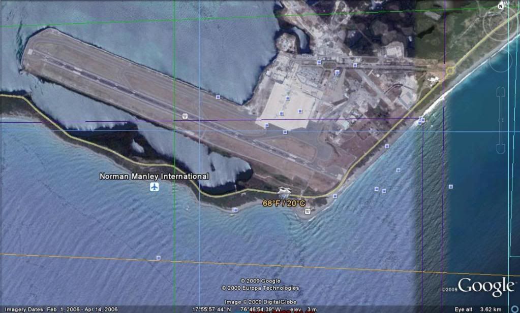 Voici une vue aérienne de l'aéroport Norman Manley de Kingston :