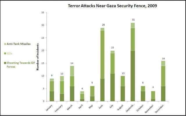 Les attaques terroristes depuis la bande de Gaza près de la clôture de sécurité 2009-2010