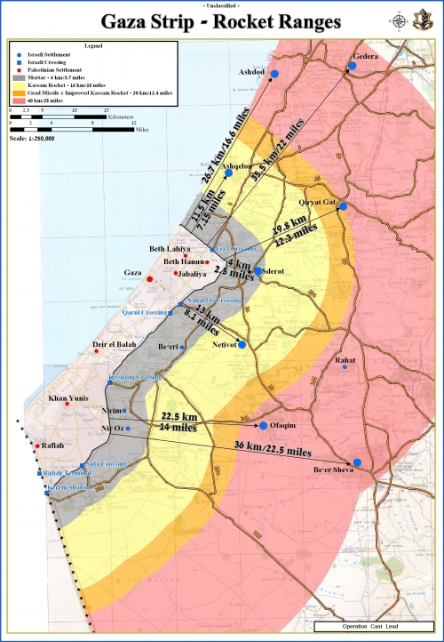 Aujourd'hui il y a plus de 950.000 israéliens qui vivent à portée de roquettes, de missiles d'obus de mortiers, d'explosifs – La plus grande agglomération étant la ville de Beer-Shéva (531.000 civils) et qui ont 60 secondes pour trouver un abri lors d'un tir.