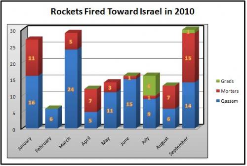 Depuis la fin de l'opération de l'Armée Israélienne en Déc 2008 / Jan 2009. Les tirs des terroristes de Gaza ont fortement diminués.