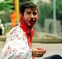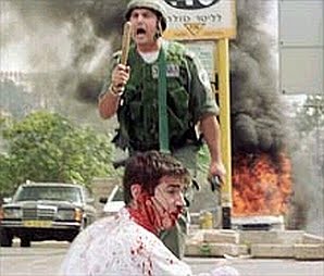 (L'exemple de l'affaire Tuvia Grossman [photo] est une affaire médiatique de manipulation d'image dans le contexte du conflit israélo-palestinien. La photo est diffusée dans plusieurs médias internationaux [dont Libération] et est présentée dans un premier temps comme la photo d'un Palestinien agressé par un policier israélien, elle était en fait celle d'un étudiant juif américain battu par plusieurs manifestants palestiniens. Tuvia Grossman, la victime au visage en sang sur la photo, est un étudiant juif américain de Chicago en voyage en Israël. Peu de temps avant la prise du cliché, Tuvia et ses amis ont été extraits de leur taxi par des manifestants palestiniens qui les ont ensuite sévèrement battus, ce qui explique leurs blessures. Le policier israélien, présenté par les médias comme l'agresseur, a en réalité secouru les jeunes victimes des manifestants palestiniens.) (Wikipédia)