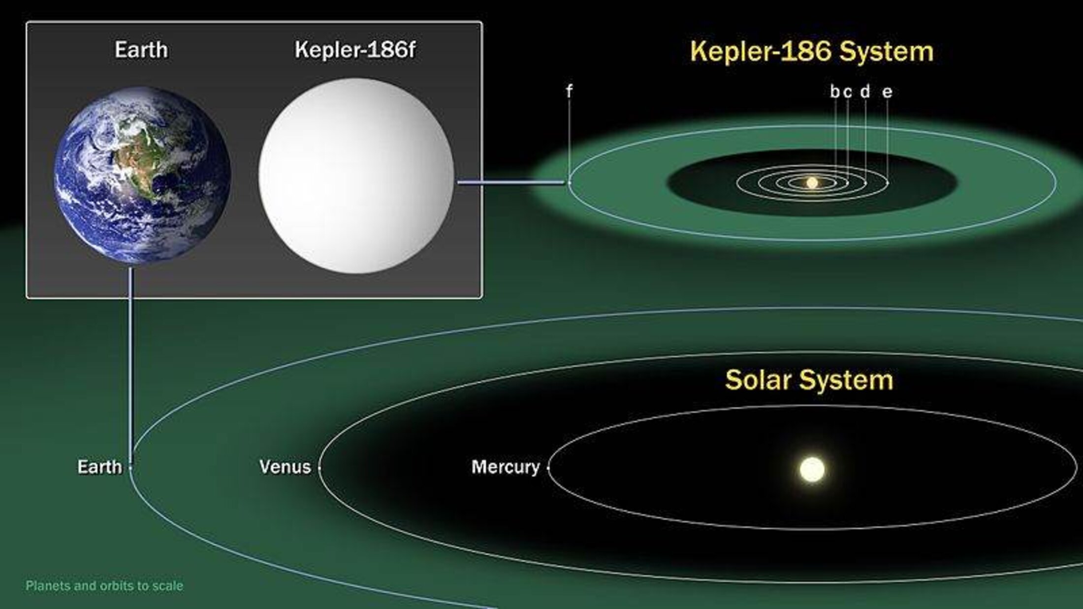 Le télescope Kepler a passé en revue près de 150 000 étoiles de mars 2009 à mai 2013, et a identifié 961 planètes dans cet ensemble. Quatre planètes ont déjà été détectées, en 2013, autour de la naine rouge Kepler-186, toutes d’un diamètre inférieur à une fois et demie celui de la Terre, mais trop près de l’étoile pour pouvoir être habitables. La cinquième a donc été découverte un an plus tard, et des mesures précises ont permis de déterminer son diamètre et de situer son orbite dans les limites de la « zone habitable ».