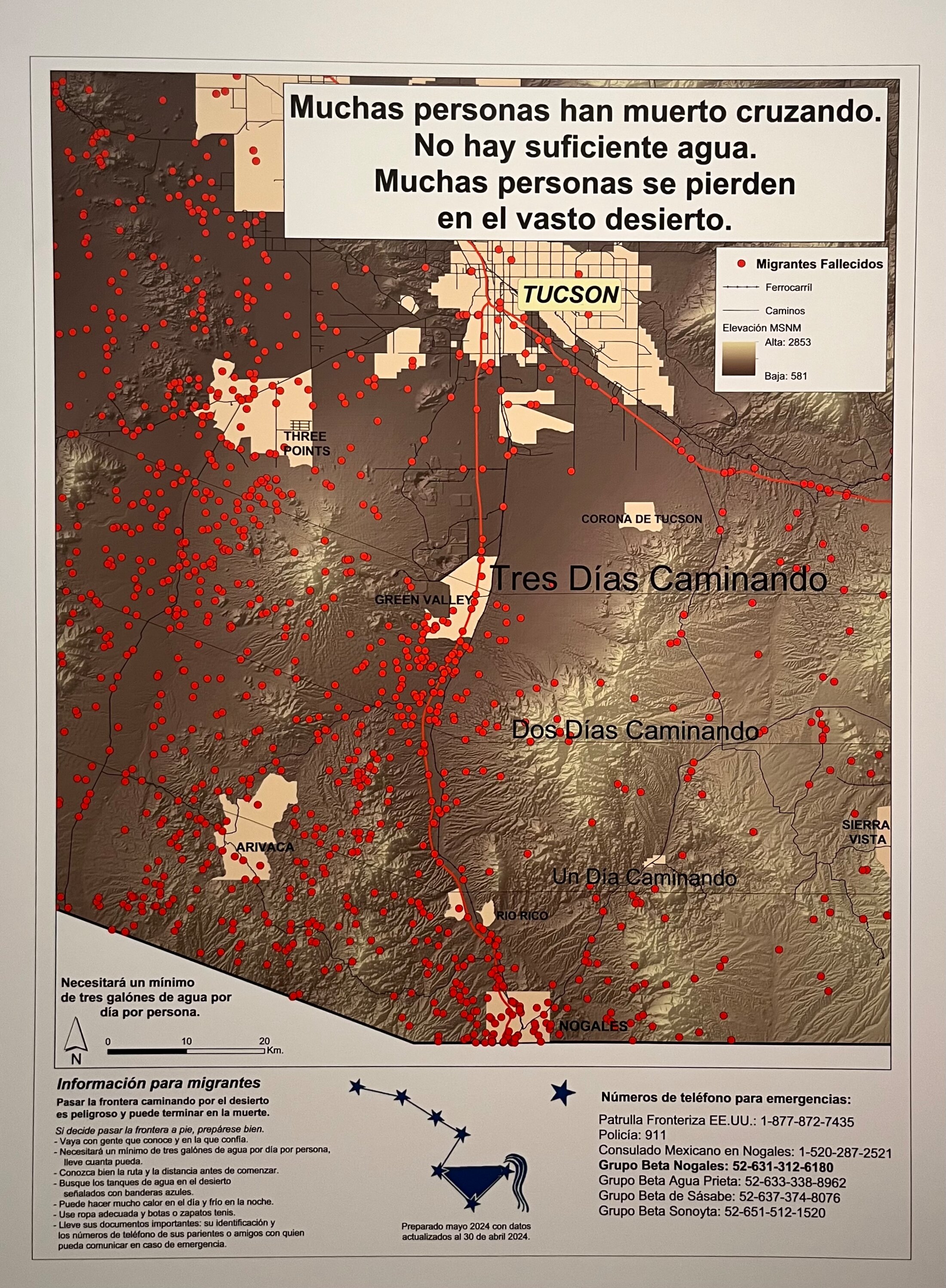 Une carte à l'entrée permet de mesurer l'ampleur du désastre, car chaque point rouge y représente un cadavre desséché ou un tas d'ossements humains (le nombre de morts dans cette seule région est estimé à plus de 4000) et à l'heure où Trump et ses acolytes redoublent d'efforts dans leur chasse aux immigrés, il me semble utile de l'évoquer: