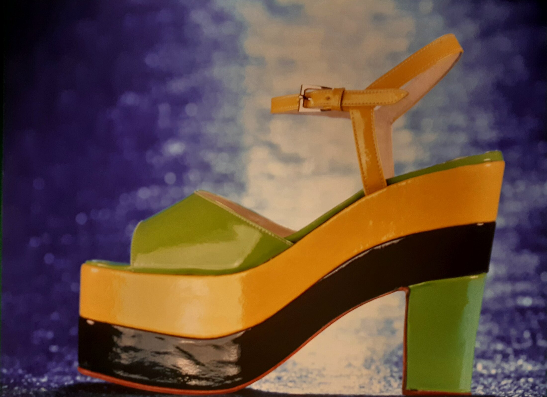 Une extravagante chaussure à double semelle conçue pour une marque de l'époque: