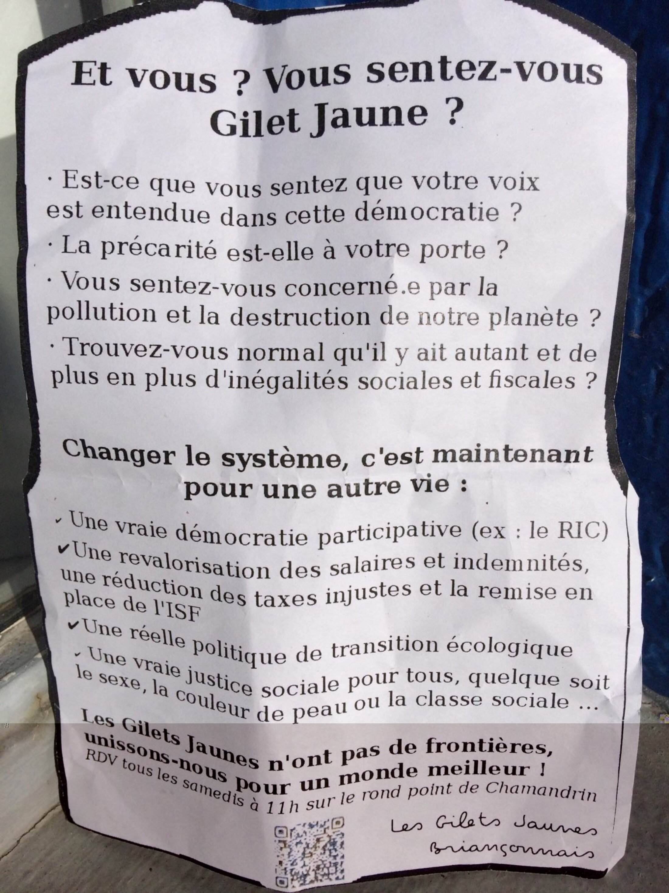 En attendant, l’Acte VIII n’est pas terminé et, ce dimanche, les gilets jaunes du Briançonnais diffusent sur les marchés le petit flyer ci-dessus. Comme on peut le lire, il s'agit d'un véritable brûlot insurrectionnel ! ;-))