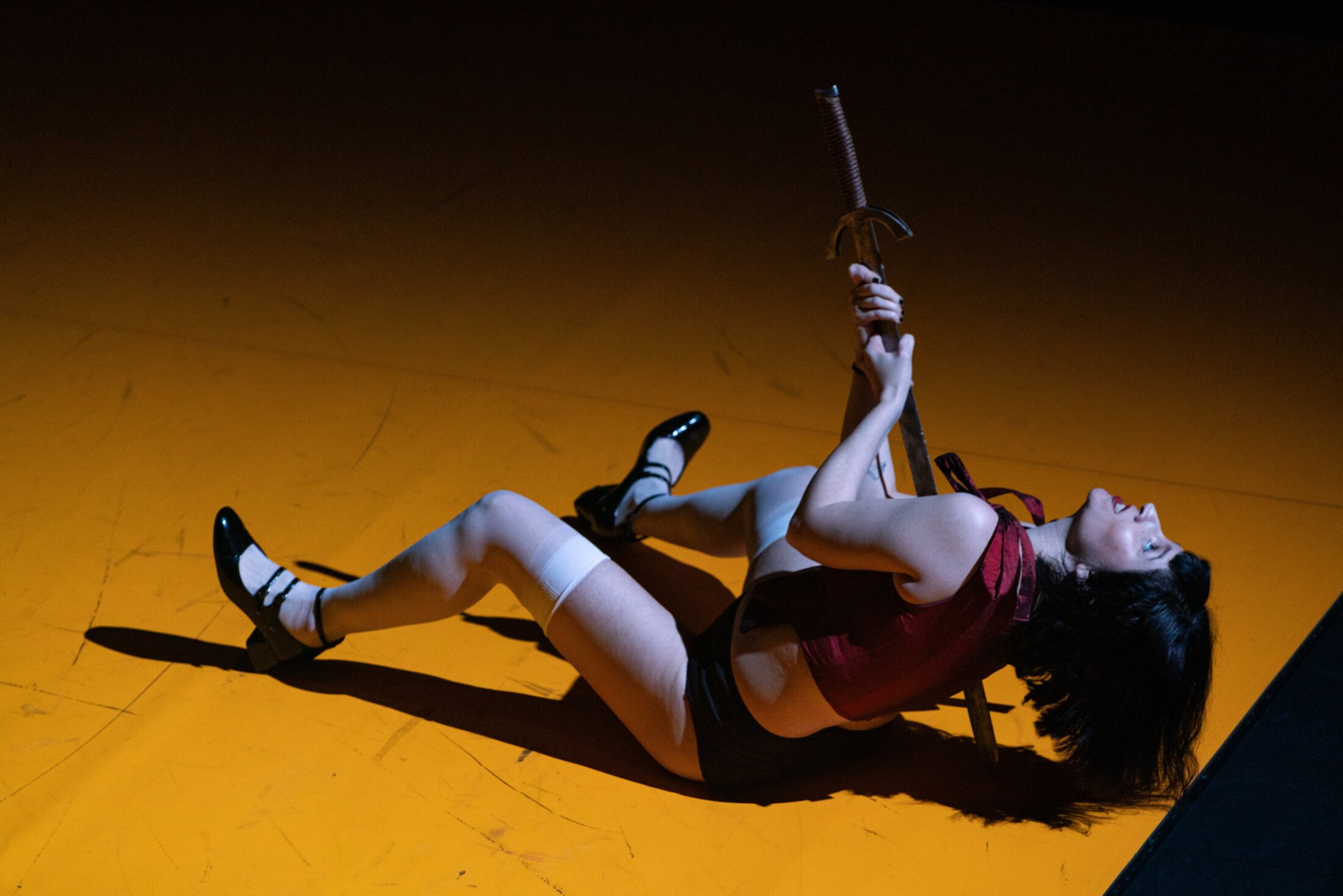 Dans ce second volet, la vision singulière de Carolina Bianchi qui affirmait en lettres clignotantes « Fuck catharsis » dans le premier volet, soustrait une nouvelle fois le spectacle de la violence, de la douleur et de l’humiliation à toute représentation cathartique par un traitement volontiers ironique et marqué par l’auto-dérision et le refus du misérabilisme puisque ce dernier empêcherait toute approche systémique et nuancée des violences sexuelles et de genre. Mais il ferait de plus du traumatisme de la metteuse en scène, victime en 2015 de soumission chimique et de viol lors d’une fête rassemblant artistes et intellectuels à São Paulo, un épisode universellement formulable, partageable et compréhensible, alors que l’une des difficultés évoquées par les victimes d’agressions sexuelles est justement celle de parvenir à dire l’indicible de cette violence qu’elles ont vécue. C’est ce que l’on croit l’entendre hurler dans le poignant monologue adressée à voix basse à la dramaturge britannique Sarah Kane à la fin du spectacle. Seule sur le plateau à côté d’un imposant portrait de la dramaturge, Carolina Bianchi revient sur le talent – pourtant génial – de sa poésie, tout en ne manquant pas d’en rappeler la profonde douleur, la même qui la pousse à mettre fin à ses jours à l’âge de 28 ans. Là, alors qu’elle a rejoué un suicide tout de théâtre de Sarah Kane, la comédienne se relève alors que le plateau commence peu à peu à se teindre des couleurs rouges d’un incendie et que la toile vivante du Voyageur contemplant une mer de nuages du peintre romantique Caspar David Friedrich se transforme en un dessin de flammes. Car s’il n’y a certes pas de catharsis dans le théâtre de Carolina Bianchi, son spectacle-purgatoire The Brotherhood s’achève sur une volonté de faire table rase, et même de mener enfin une politique de la terre brûlée, où, en conquérante, l’artiste qu’elle est prend la place qu’elle revendique et mérite, et qu’elle tranche, de son épée affutée, la tête au génie romantique et à ses avatars de tous genres.