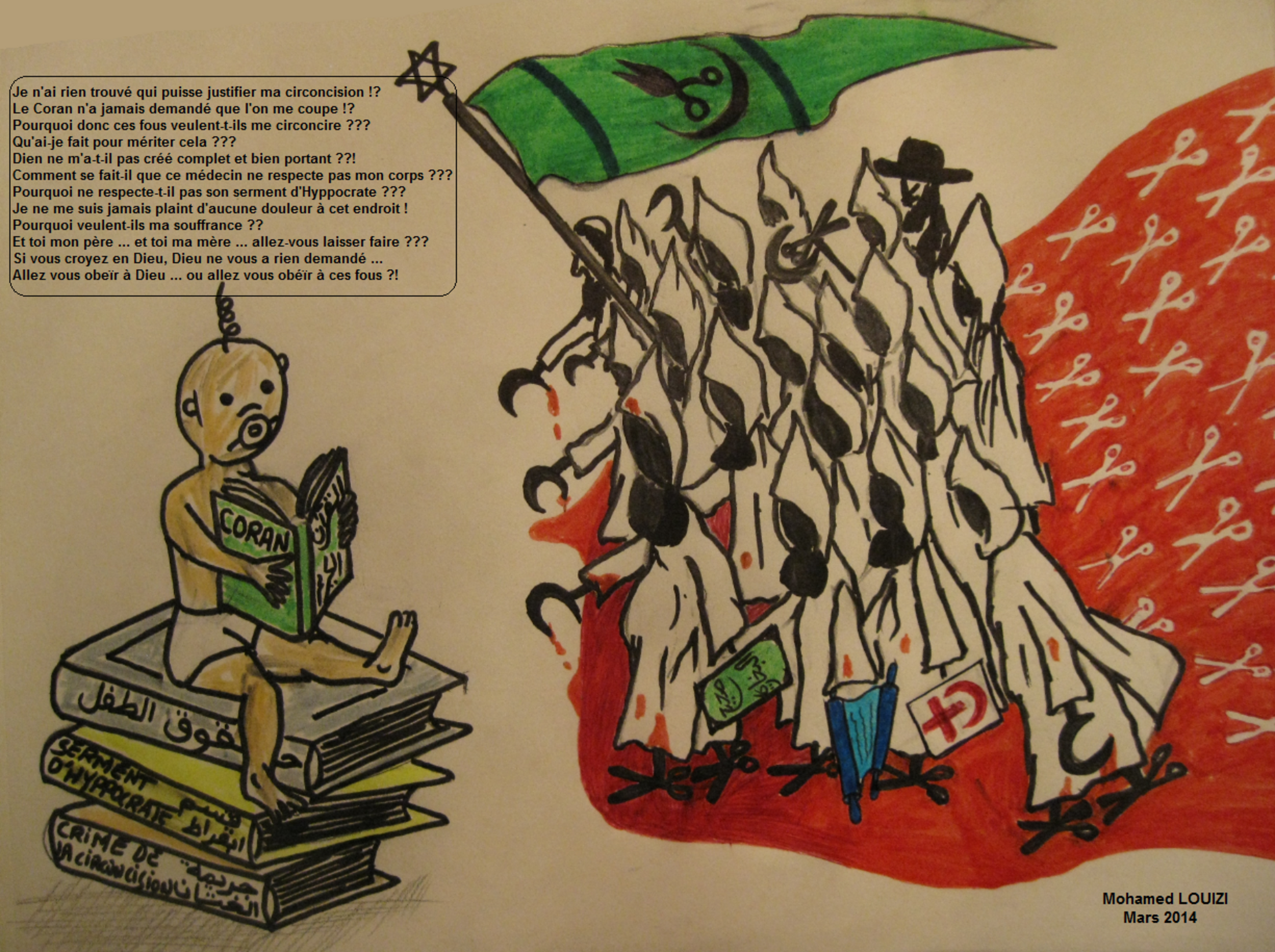 Caricature questionnant les consciences et des parents au sujet des justifications de ladite "Circoncision" ?! © Mohamed LOUIZI