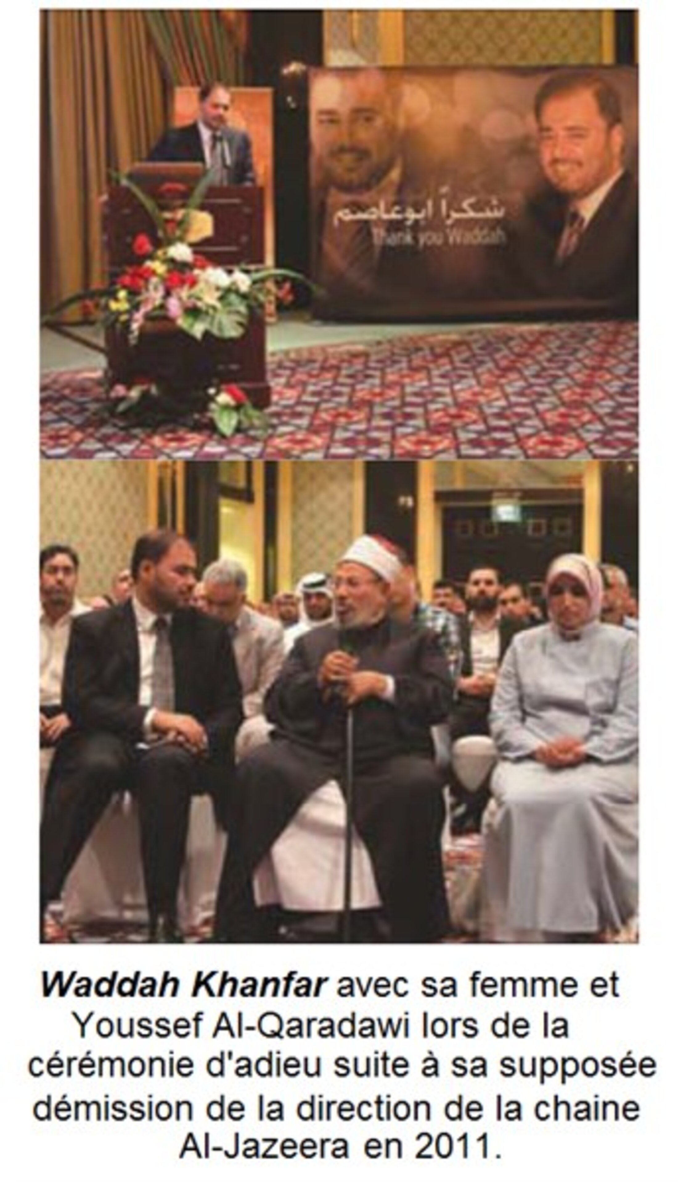 Ainsi les islamistes trop présents au sein de la rédaction d’Al-Jazeera le savaient déjà. Ici, je ne vais pas prouver, encore une fois, les liens anciens et permanents entre cette chaîne et les « Frères Musulmans » depuis sa création. J’aborderai, en détails, ces liaisons dans mon prochain papier. Je précise juste, pour un avant-goût, que le leader stratège « frère musulman » qatari, nommé Jassim Sultan, qui fut l’architecte de la dissolution de la branche qatarie des « frères » en 1999, pour raisons géopolitiques et pour pouvoir faire de l’entrisme dans les sphères du pouvoir, sans risquer d’être étiqueté idéologiquement, était aussi l’un des principaux conseillers en planification stratégique de la chaîne, lorsqu’un autre « frère musulman », le palestinien Waddah Khanfar occupait le poste de directeur général de la chaîne, entre 2003 et 2011. Ce « frère » directeur général avait passé un temps en Afghanistan, en couverture médiatique d’un certain Oussama Ben Laden à côté d’un autre « frère » nommé Tayseer Allouni, le premier journaliste à avoir interviewé le « frère moujahid » à la tête d’Al-Qaïda. En 2011, Waddah Khanfar a été démis de ses fonctions pour différentes raisons, liées, selon diverses analyses, à un léger changement dans la ligne de la chaîne satellitaire, après le début dudit « Printemps arabe », paraît-il. D’autres évoquent ses liens flous avec la CIA américaine, dévoilées par des révélations WikiLeaks, etc. J’y reviendrai dans mon prochain billet. En attendant, un article du journal Le Monde à son sujet ici.