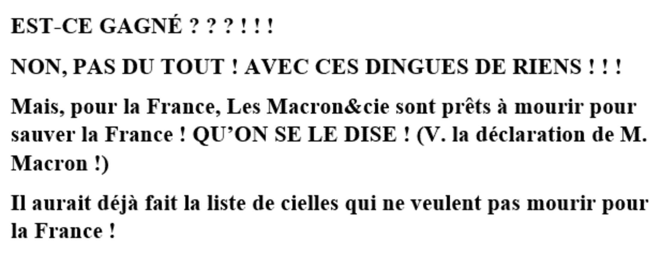 Le logiciel Macron n’est-il pas invariable et-et celui qui s’est royalement exprimé dès l’âge de 17 ans ? ! Celui du « Non-changement de cap » (La mort éventuelle étant intégrée dans le programme) ? !