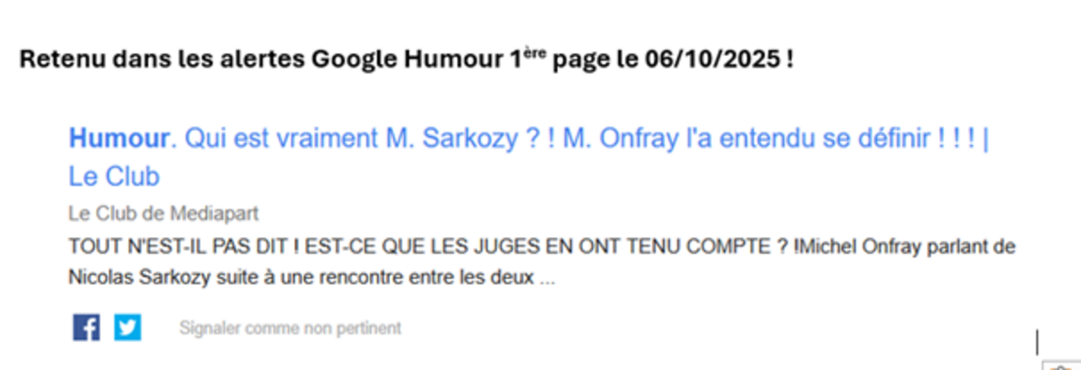 Humour. Qui est vraiment M. Sarkozy ? ! M. Onfray l’a entendu se définir ! ! !