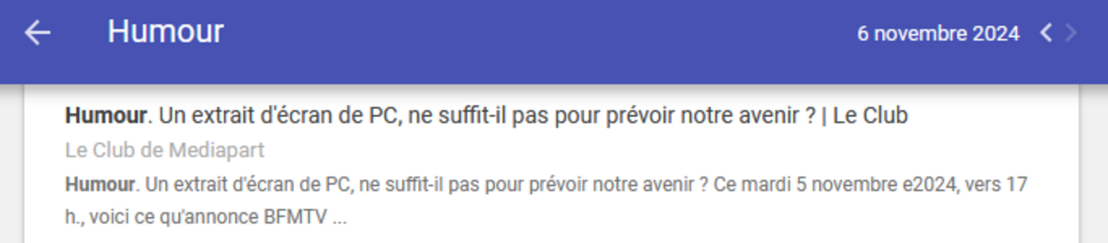 Retenu dans les Alertes Google Humour du 06/11/2024 à 1h le matin, retirée lors de la publication de 7h !