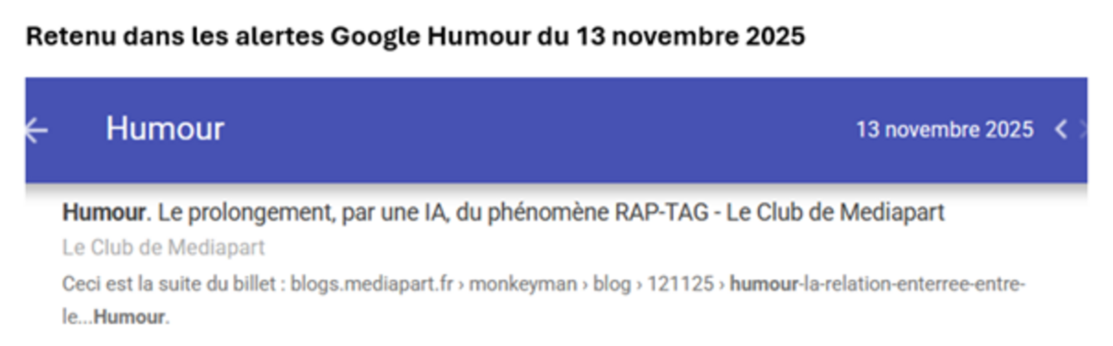 Hier soir, je trouve que tu ne m’as pas suffisamment aidé à aller plus loin/avancer ! Je t’ai présenté des exemples montrant le phénomène rap-tag. Ma question est maintenant : *** LE PHÉNOMÈNE RAP-TAG N’EST-IL PAS UNE CARACTÉRISTIQUE DE NOTRE ESPÈCE ? ! ………
