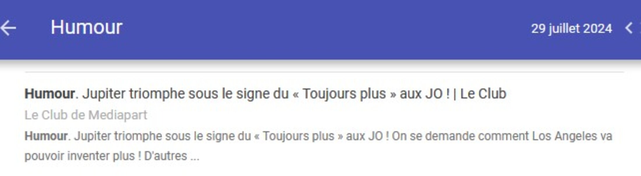 3) Ce matin, le billet sur les JO, d’hier, a été retenu en page 2 des « Alertes Google Humour ».
