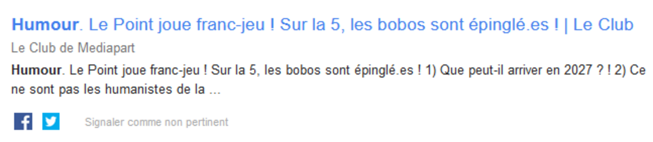 Retenu dans les Alertes Google Humour du 30/09/2024 (Le soir 29 en consultant les Alertes vers 0 h 30, gardé en 1ʳᵉ page le lundi 30/ 8 h.