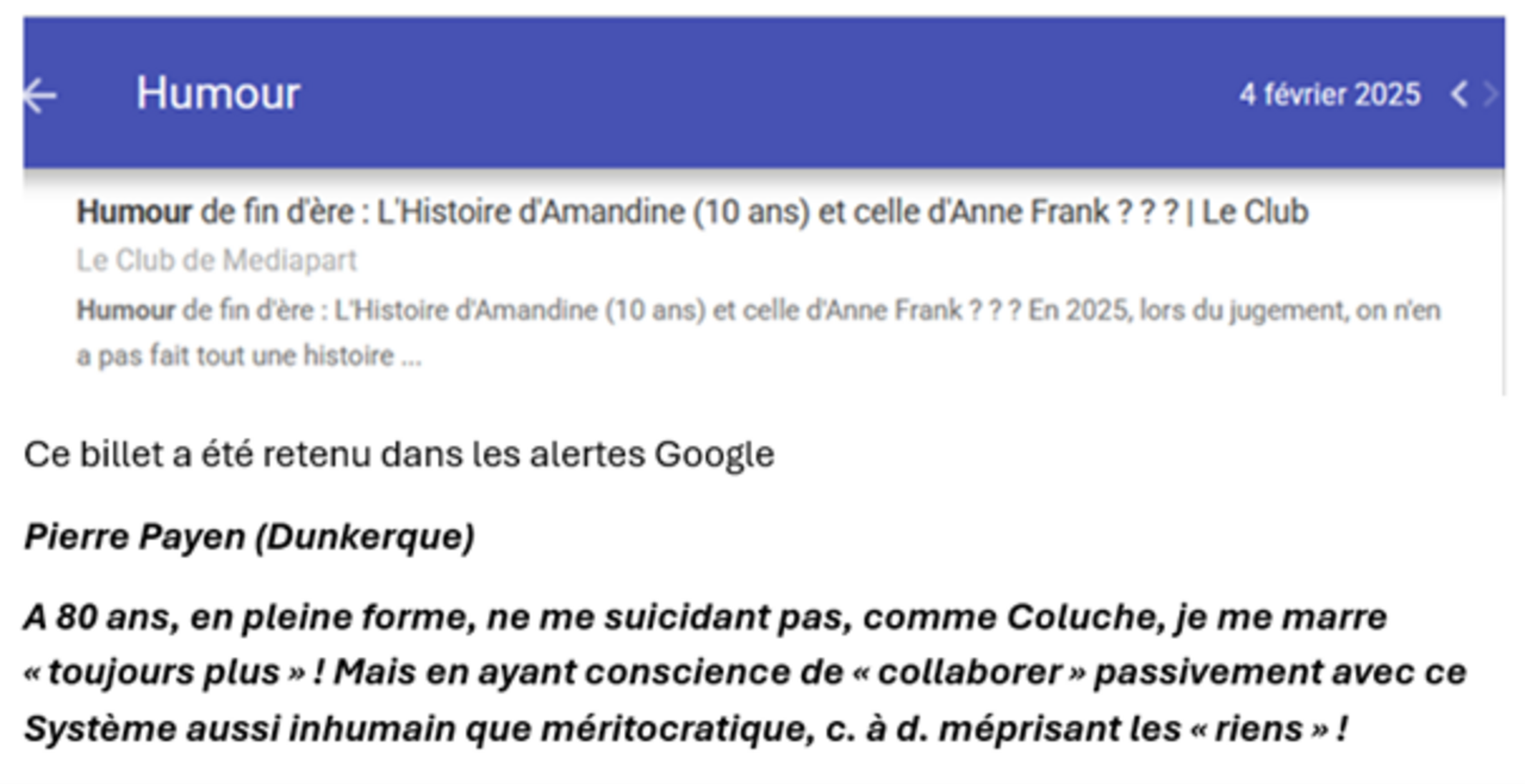 Ce billet a été retenu dans les alertes Google