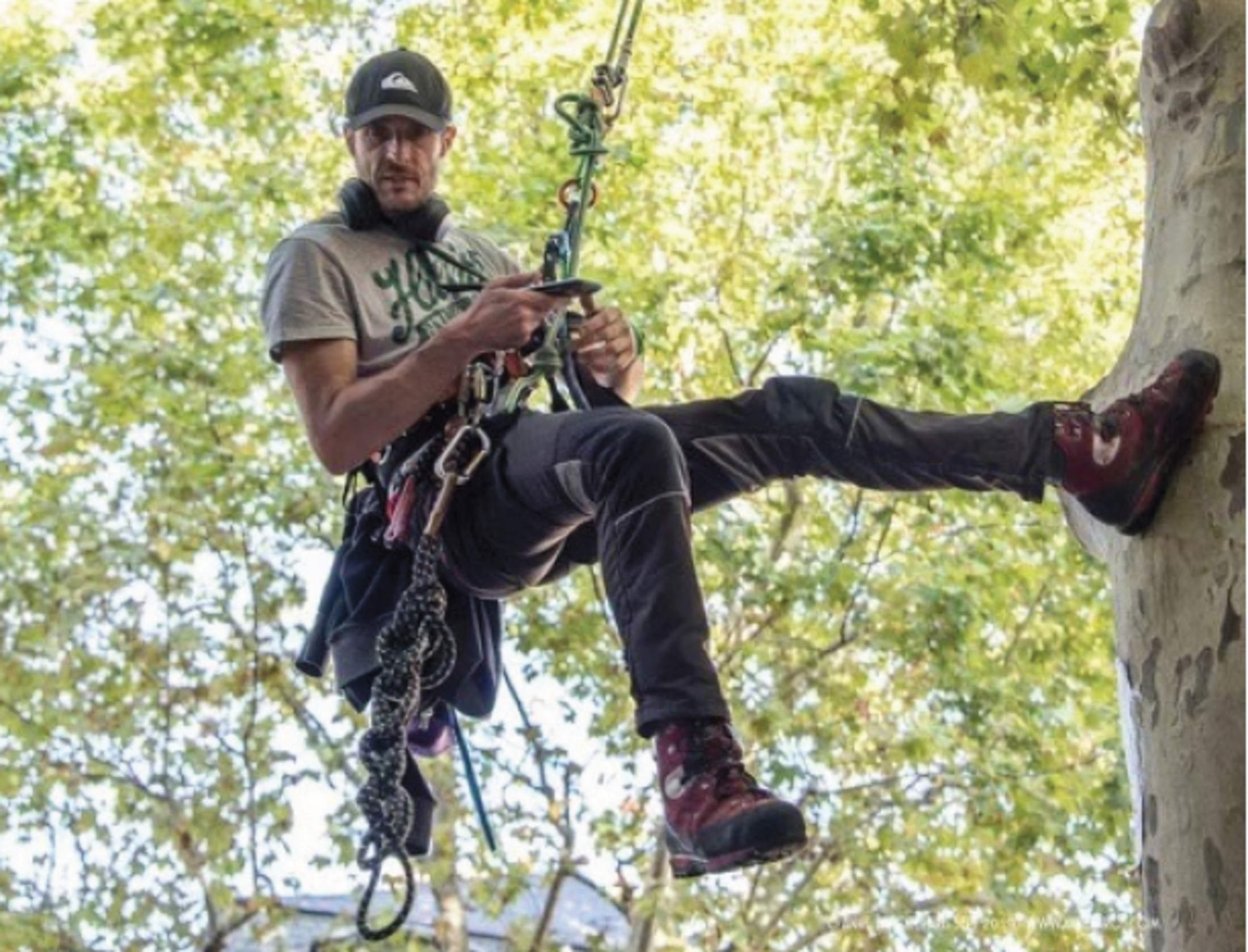 Ouais, je suis jardinier et puis après j'ai dévié vers grimpeur arboriste. Mais bon, je sais faire les deux, je connais les deux. Je sais planter des arbres, j'en ai planté des milliers dans ma vie.