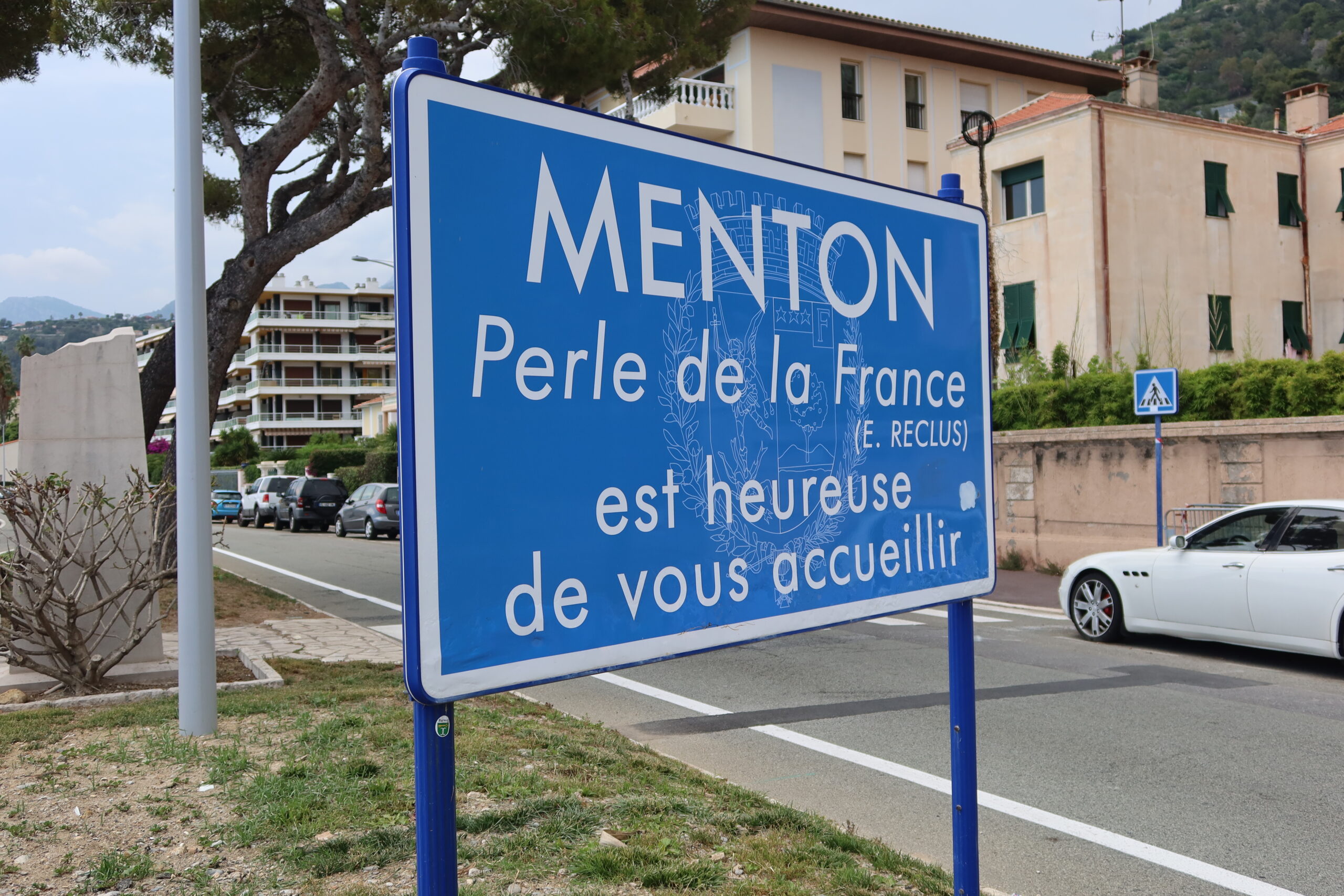 Panneau à l’entrée de la ville juste après le poste-frontière, reprenant une expression du géographe anarchiste Elisée Reclus, qui aurait probablement quelque chose à dire de négatif sur Menton aujourd’hui. Heureuse d’accueillir les Blancs devrait préciser l’annonce.