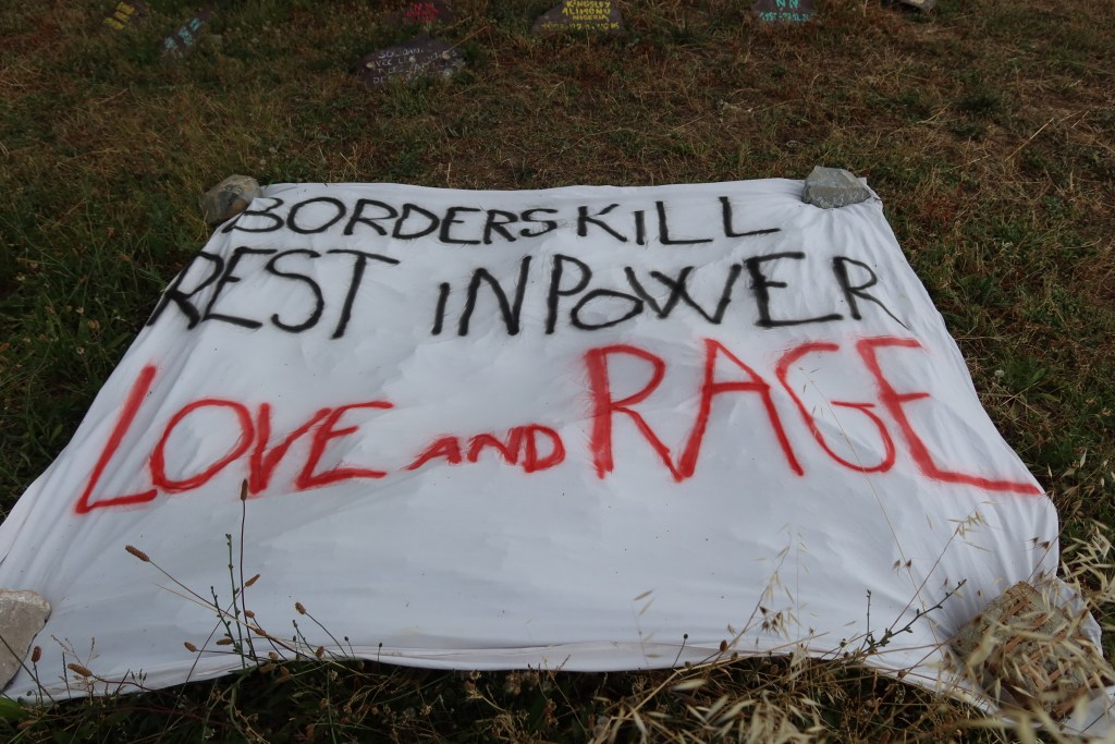 Tristesse et colère froide. Ce dimanche 11 juin, à 16h30, devant le poste-frontière Saint-Ludovic de Menton proche de la mer, côté italien, une quarantaine de personne s’est réunie pour rendre hommage à Saïd Mohamud Momin. Ce Somalien de 27 ans, exilé de chez lui car homosexuel, a été retrouvé mort le 4 juin à Bordighera, dans la mer. Les circonstances de son décès sont encore inconnues à ce jour, quoique la thèse de l’accident de noyade est envisagée. Parmi les personnes présentes, on trouve des militants no-borders, ses amis exilés, son cousin venu d’Angleterre, son ami venu d’Allemagne, avec qui il a logé pendant trois ans. Une de ses amies lit une lettre retraçant sa vie, et les yeux s’embuent de larmes. Des bougies et trois grandes photos de Saïd sont disposées sur le mausolée installé en février dernier, en hommage à toutes les personnes mortes à la frontière. Après quelques prises de paroles, notamment de son cousin, sa seule famille présente, le silence se fait pendant une dizaine de minutes. Derrière nous, le bruit de la file ininterrompue de voitures attendant de passer le bref contrôle policier, vérifiant uniquement la présence de personnes potentiellement clandestines dans les voitures, c’est-à-dire racisées.