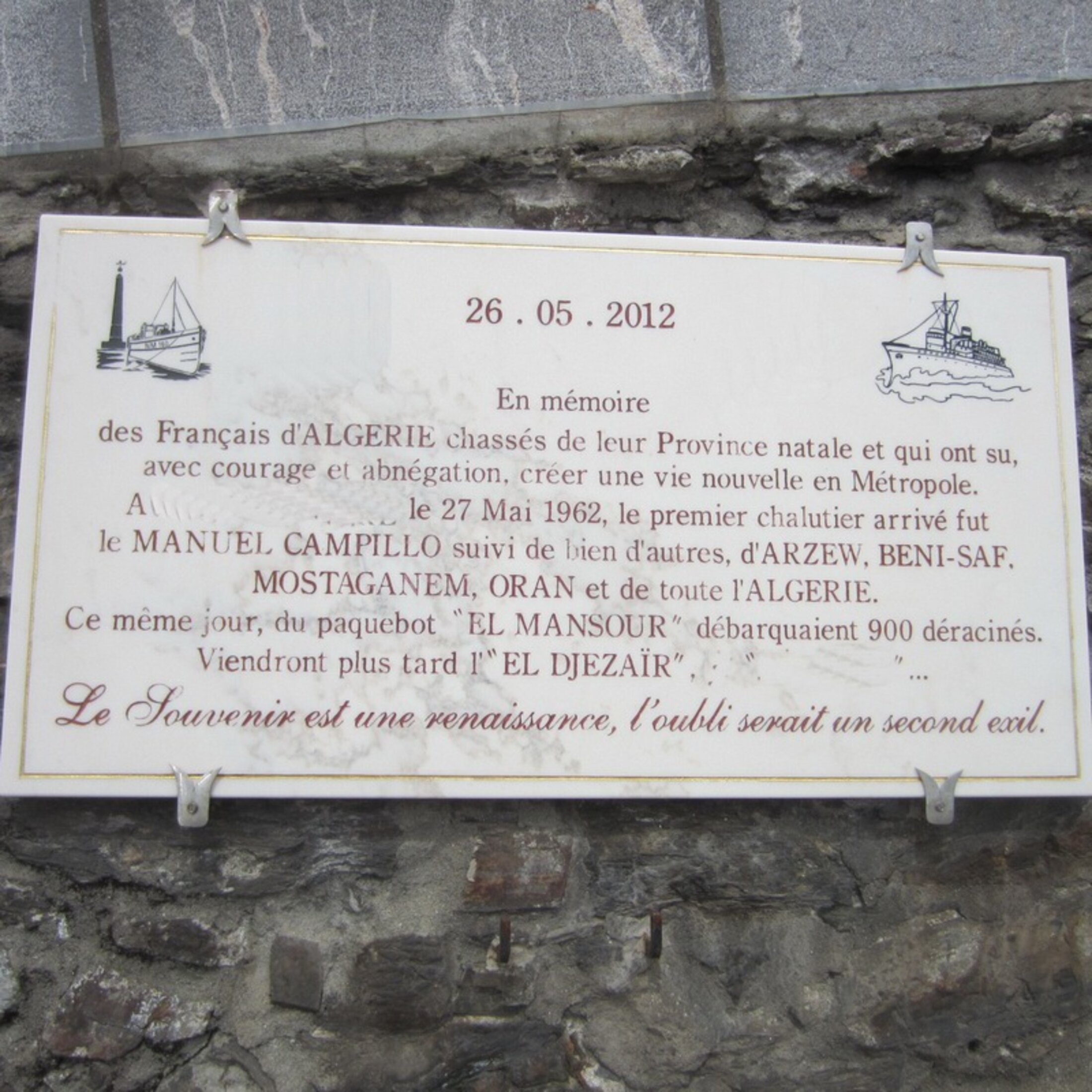 Mon portable se tortille dans ma poche. « C'est triste pour ces pieds-noirs qui sont aussi des enfants d'Algérie. Cependant, ils auraient dû aider les autochtones à s'émanciper, ils auraient dû les considérer autrement que comme des valets. C'est vrai qu'elle fait mal cette stèle, mais l'humiliation subie par des générations d'Algériens, ton père, ta mère mon père ma mère, et cela, pendant 132 ans, est une chose qu'il est très difficile d'effacer.». La réponse d’un copain en recevant la photo de la plaque. Il est enseignant. Avec nombre d’interrogations en ce moment sur la colonisation. Surtout une volonté de savoir comment ses parents l’ont vécue. Tous les deux sont morts. Lui laissant un héritage d’interrogations et de doutes. Un paquet de douleurs restées muettes. Comment leur donner une voix ? Sans étouffer son présent dans ce pays. Ni subir les morsures du silence. Pouvoir enfin trouver une forme d’équilibre sur le fil entre deux rives. Celles des êtres et de l’histoire de deux pays. Une histoire écrasante encore de nos jours. Funambule à perpétuité entre deux chaises ? Certaines plaies ne se refermeront pas. Mais les nommer peut empêcher l’ouverture de nouvelles blessures. Un des plus grands chantiers de France ?