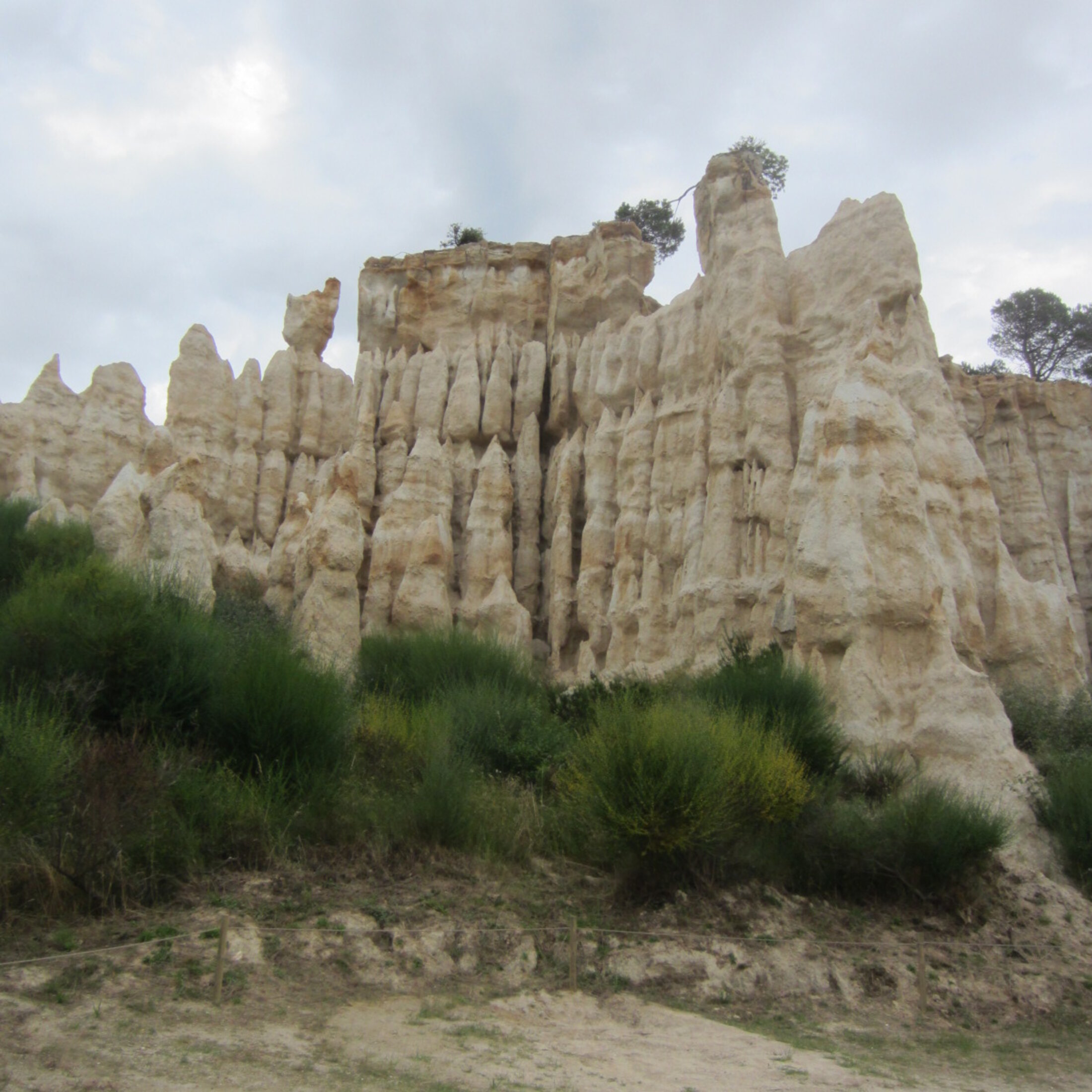 Visite du panthéon de l’éphémère. C’est ma sensation devant ces sortes de stalactites de sable. Elles me font penser à une pochette de disques de mes parents. Un vinyle que Maman écoutait en boucle. Le montage photo me fascinait quand j’étais gamine. C’est l’album « Deep Purple in rock » détournant les portraits de président taillés à même la roche du Mont Rushmore. J’imagine des têtes de personnages célèbres gravés au sommet de ces colonnes en cours de disparition. Certains grands hommes et grandes femmes ayant contribué à faire progresser l’humanité. D’autres à la détruire. Une galerie de portraits de personnalités. Une sorte de livre d’histoire s’effritant au fil du temps. Pourquoi pas y mêler des inconnus. Petits salopards de proximité ou belle personne. le panel du pire et meilleur dont nous sommes capables. Le visage de l’humanité gravé dans un mémorial à ciel ouvert.