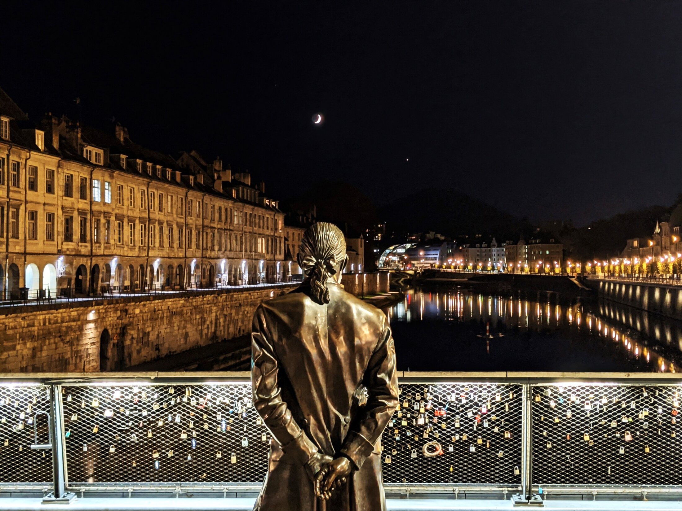 Il est 5h qui peu à peu s’éclipsent, et une fois sur le pont je fais ce que font certains bisontins, je pose ma main gauche sur le dos de Jouffroy d’Abbans, et je me concentre pour faire un vœu pour la nouvelle année
