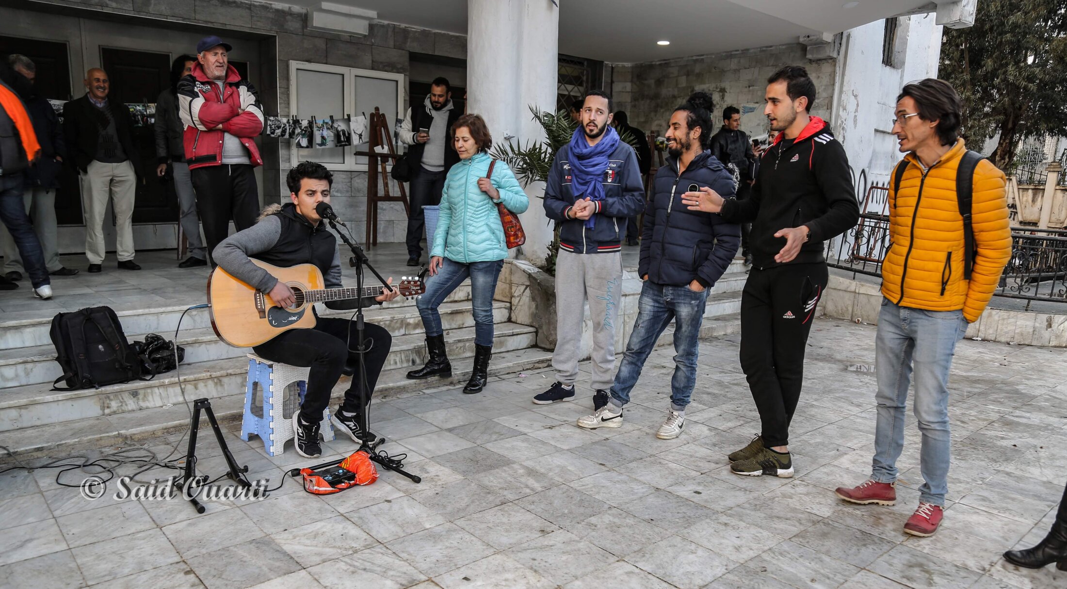 Mohamed Yargui : C’est à l’issue d’un rassemblement initié par le Café littéraire de Bejaia que l’opération «l’Art dans la rue » a vu le jour. Cette réunion avait pour objet le rôle de l’artiste dans la révolution qui a actuellement cours en Algérie. Nous sommes sortis de ce rassemblement avec le sentiment que notre rôle en tant qu’artistes, ne devait pas se limiter à produire des discours mais que nous devions agir en occupant le terrain avec des actions concrètes. Quelques jours plus tard, Nouredine Saidi, plasticien et moi-même lancions un appel pour organiser un événement artistique dans la ville. Au même moment, un groupe de musiciens et de photographes, à leur tête, Said Ouarti et le groupe des « Perturbateurs», ont eu la même idée que nous. C’est ainsi que nous nous sommes rencontrés et rassemblés pour mener une action commune que nous avons baptisée « l’Art dans la rue ». Nous voulions occuper l'espace public n utilisant l’Art comme moyen de revendication.