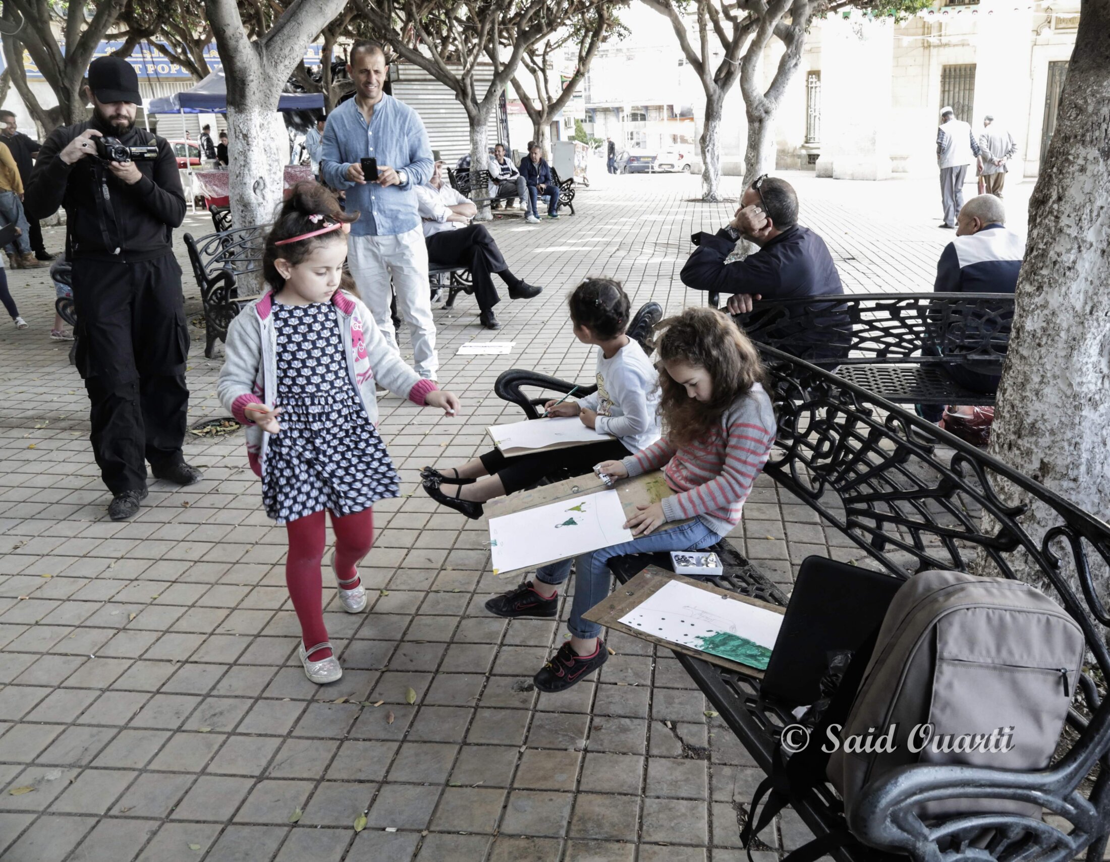 M. Y. : Tous les mardis, nous occupons l’espace public pour initier la population et notamment les jeunes et les enfants aux arts : musique, chant, dessin, peinture, photographie… Les activités sont libres et spontanées. La scène est ouverte aux artistes professionnels et aux amateurs. L’opération « l’Art dans la rue » a accueilli des chanteuses et chanteurs confirmé.e.s, des jeunes qui, spontanément, ont pris le micro pour chanter, la troupe de théâtre «les Globe-trotters »; le danseur Nounou et ses amis. Mais l’activité qui rencontre le plus de succès est celle consacrée aux enfants. Cette opération baptisée « l’Enfance de l’art » a la particularité de laisser les enfants donner libre cours à leur imagination par le biais de la peinture et du dessin. Les activités artistiques ont lieu dans plusieurs quartiers névralgiques de la ville de Béjaia : l’Esplanade de la Maison de la Culture, Place Gueydon, Place Lumumba. Nous pensons élargir le terrain d’investissement et organiser des activités dans des quartiers populaires.